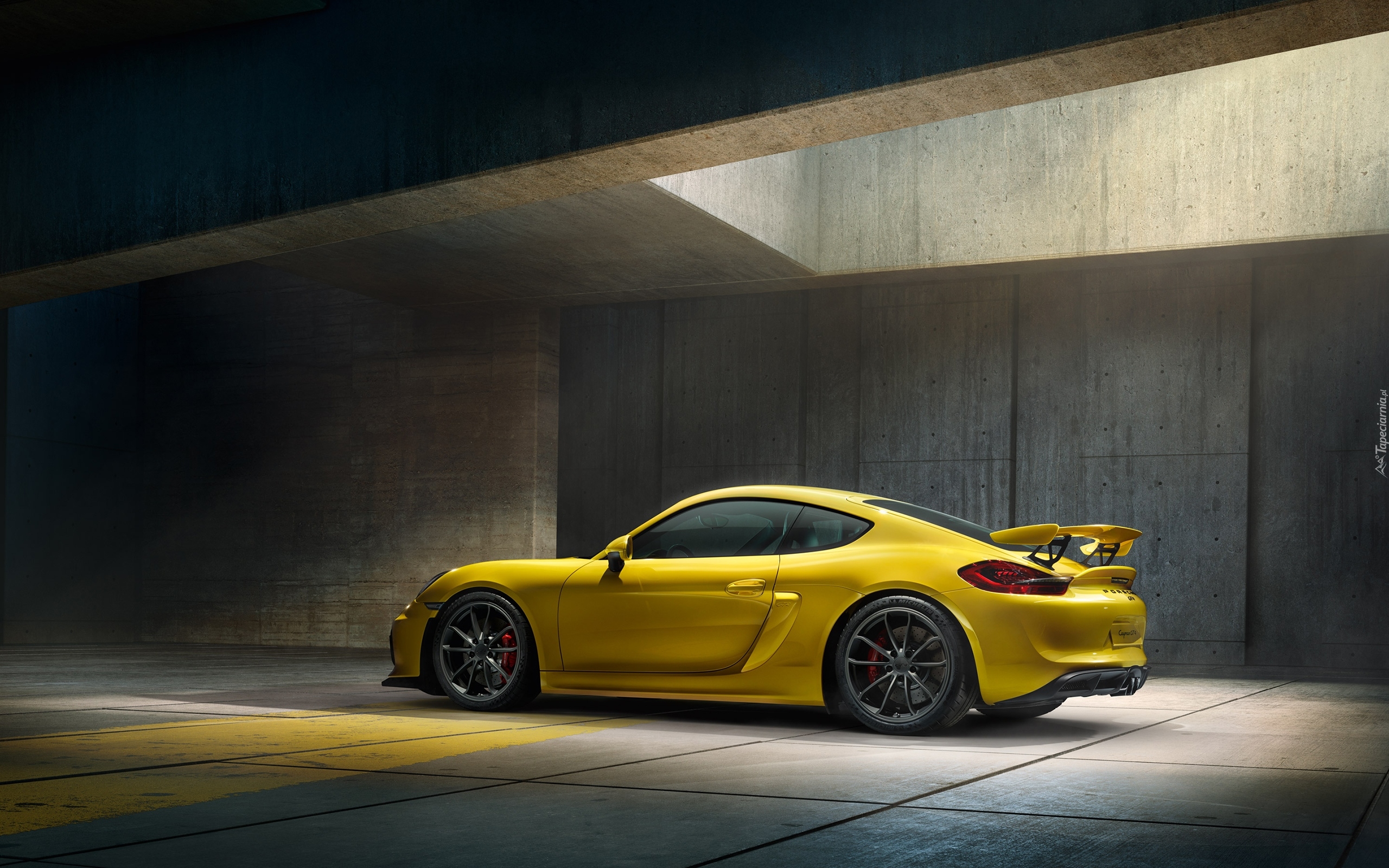 Edytor tapety: Żółte Porsche Cayman GT4 bokiem