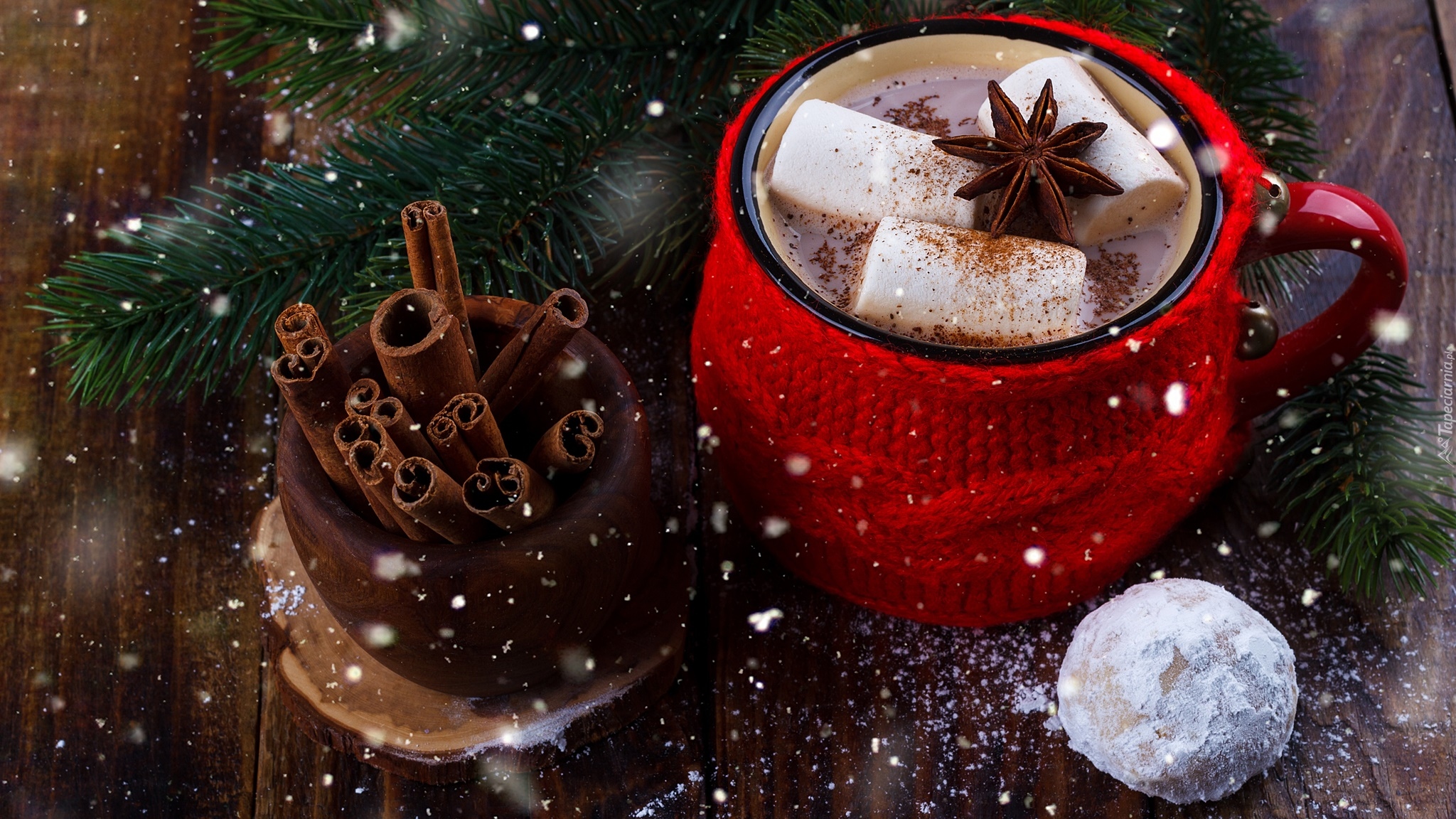 Edytor tapety: Kubek kakao z piankami i cynamonem