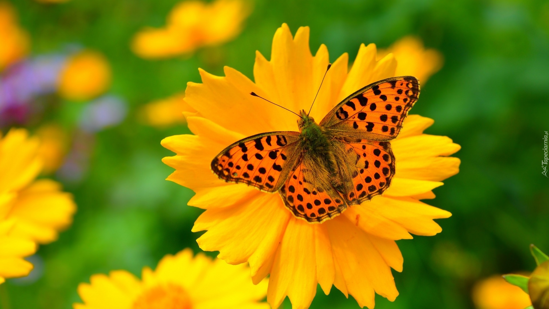 Edytor tapety: Motyl na żółtym kwiatku