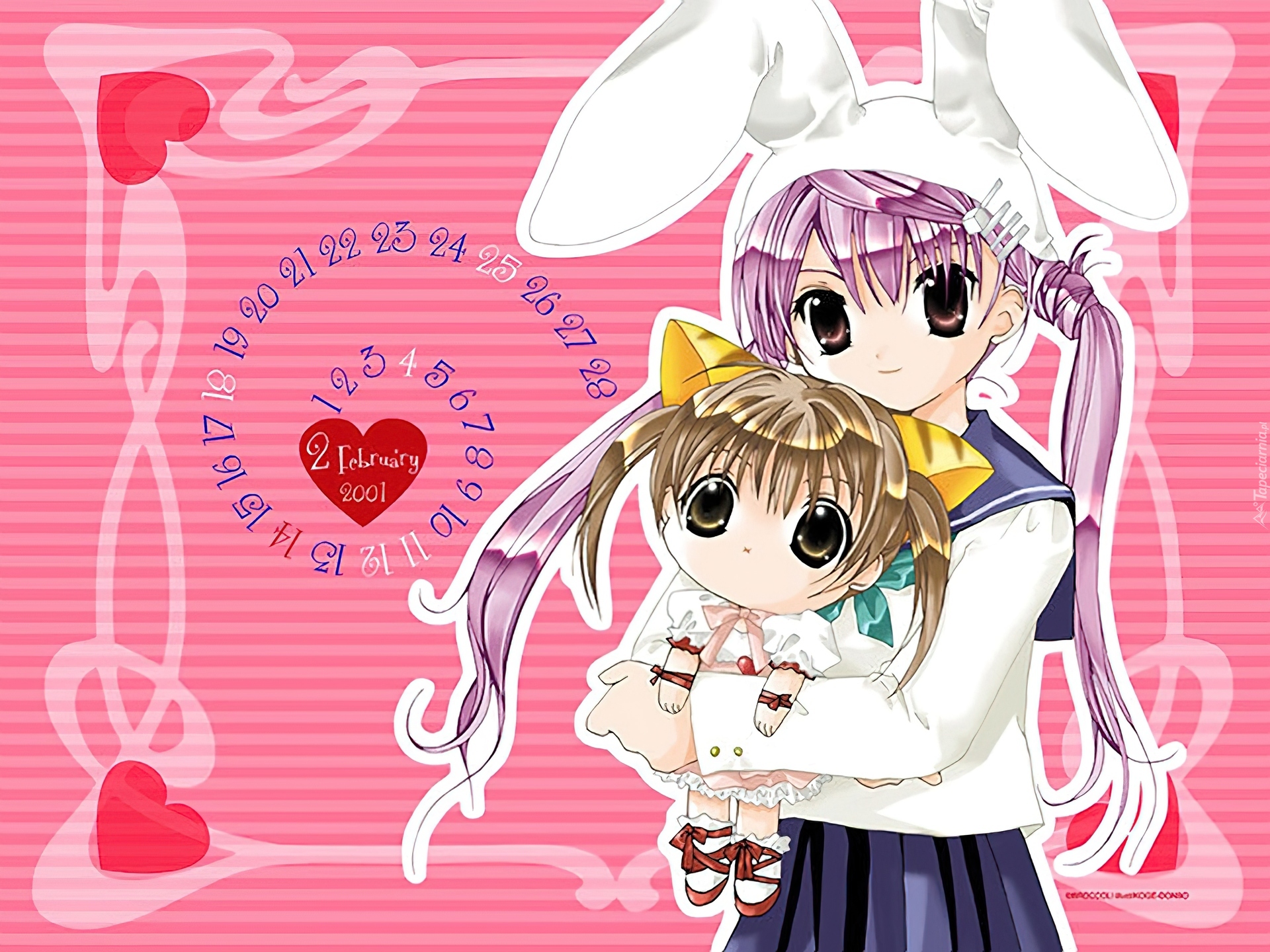 Edytor tapety: Digi Charat, dziewczynki, mundurek, uszy, serce