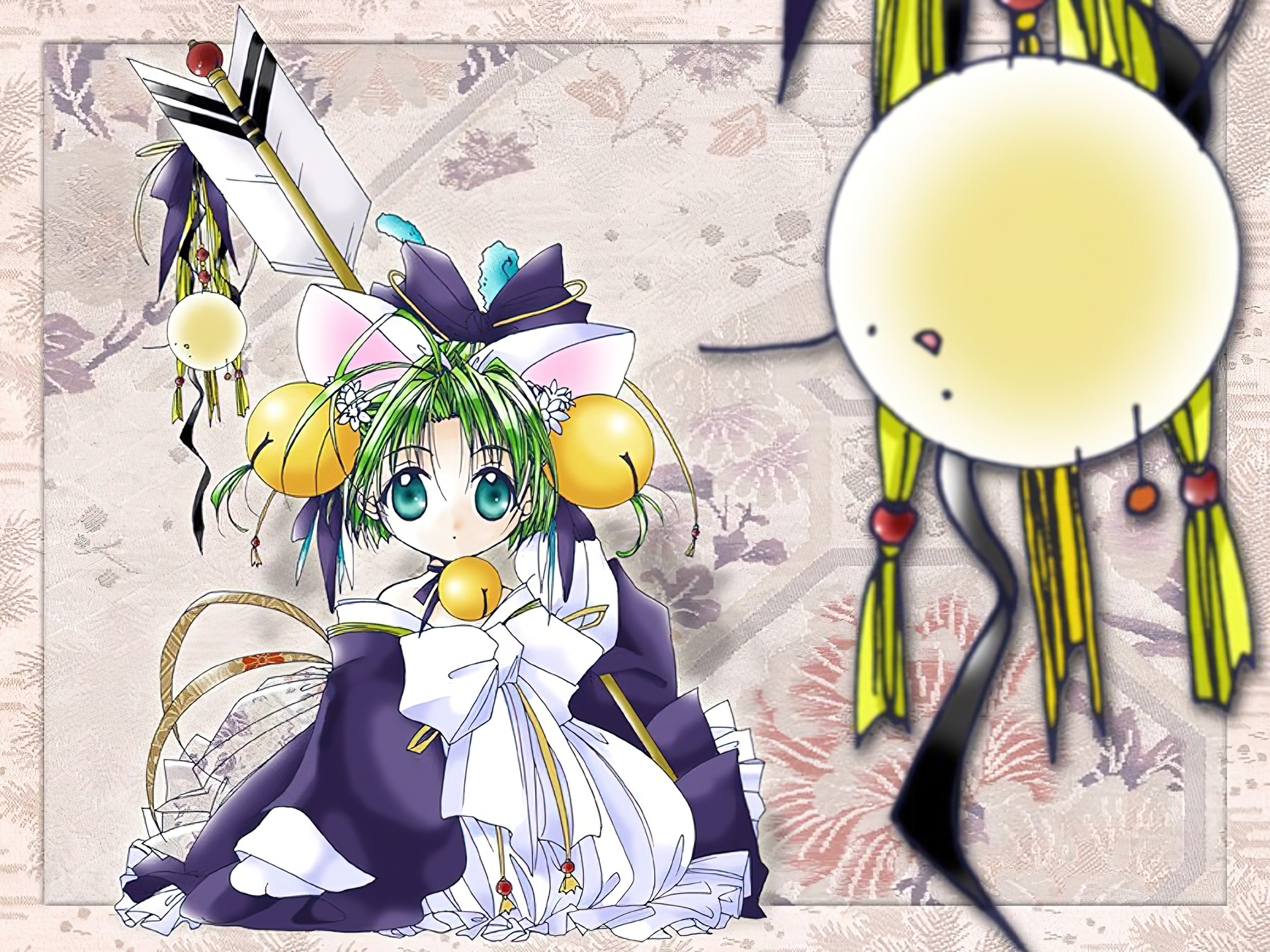 Edytor tapety: Digi Charat, suknia, strzała, haft, kokarda