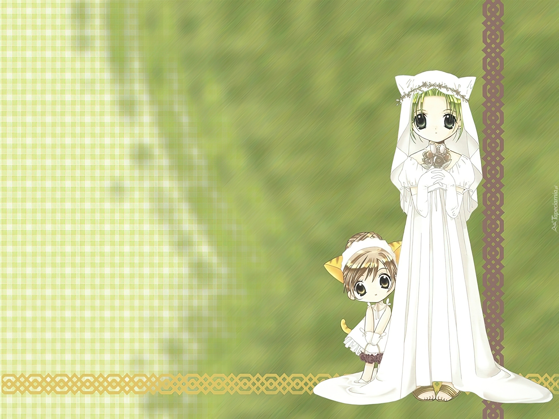 Edytor tapety: Digi Charat, suknia, ślub, kwiaty, bukiet