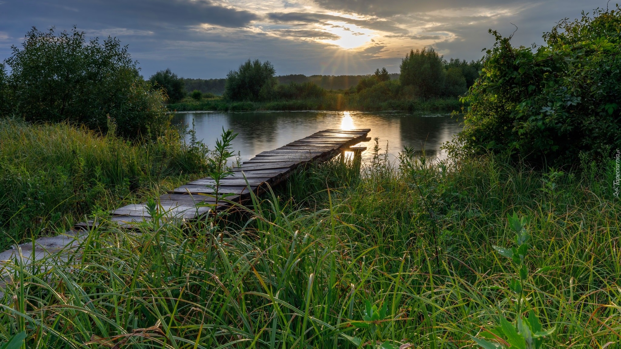 Edytor tapety: Pomost nad rzeką w trawie