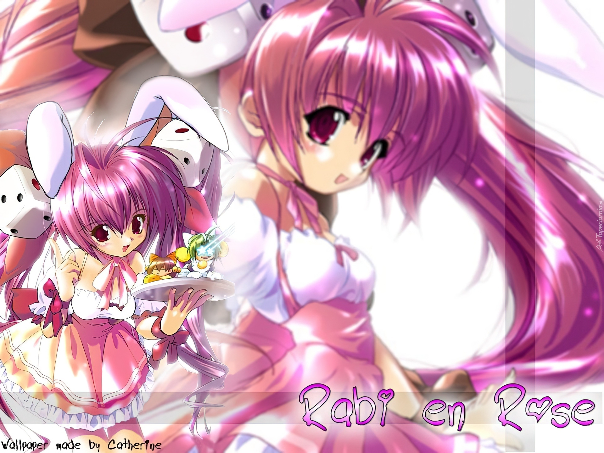 Edytor tapety: Digi Charat, kostka, uszy, taca, dziewczynki