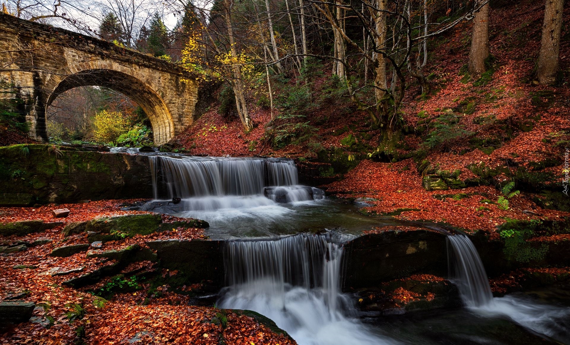 Edytor tapety: Most nad wodospadem kaskadowym w bułgarskiej wsi Sitowo