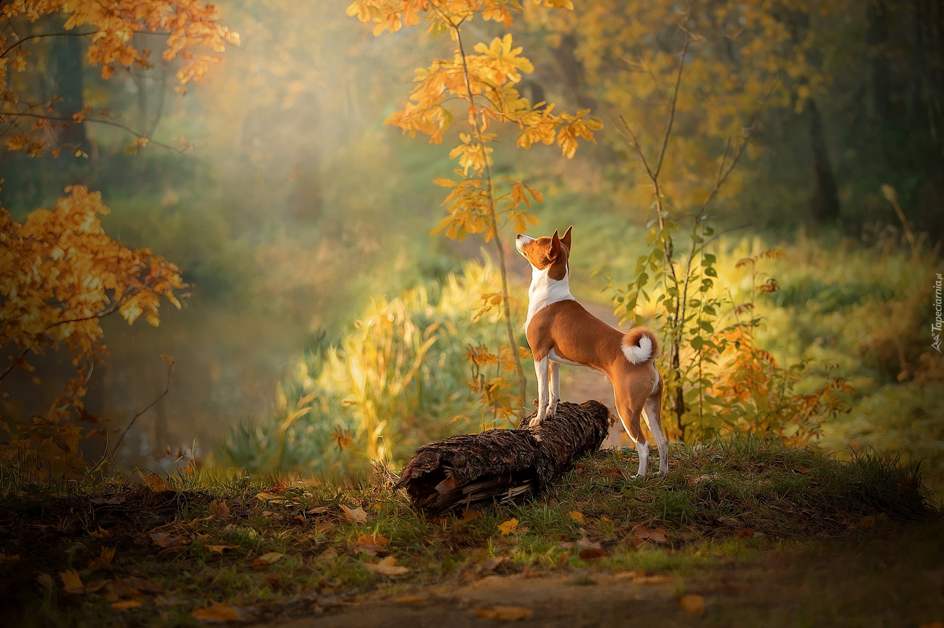 Edytor tapety: Pies w jesiennym lesie