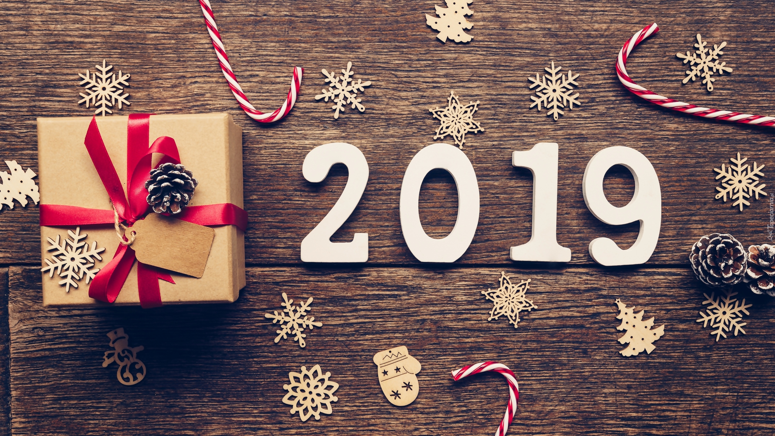 Edytor tapety: Prezent z ozdobami na Nowy Rok 2019