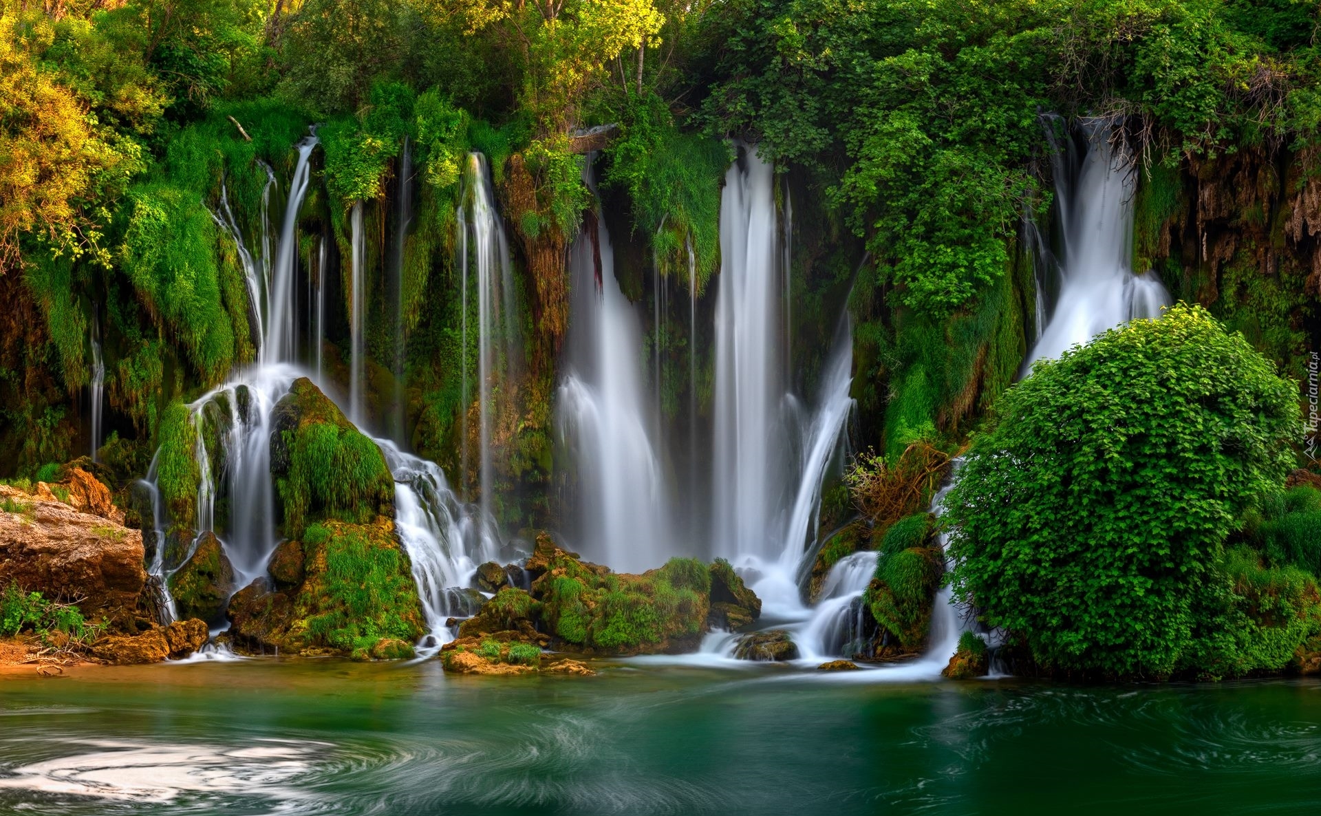 Edytor tapety: Wodospady Kravica na skałach w Bośni i Hercegowinie
