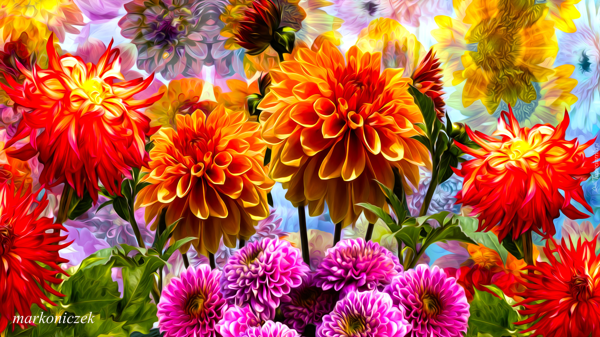 Edytor tapety: Rozświetlone dalie