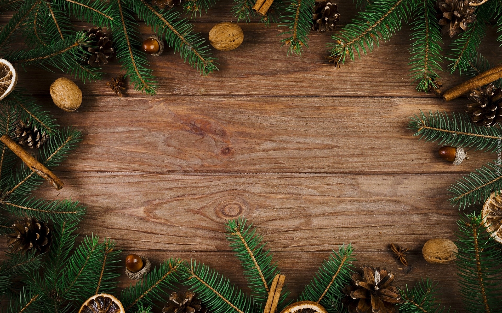 Edytor tapety: Gałązki z szyszkami i żołędziami