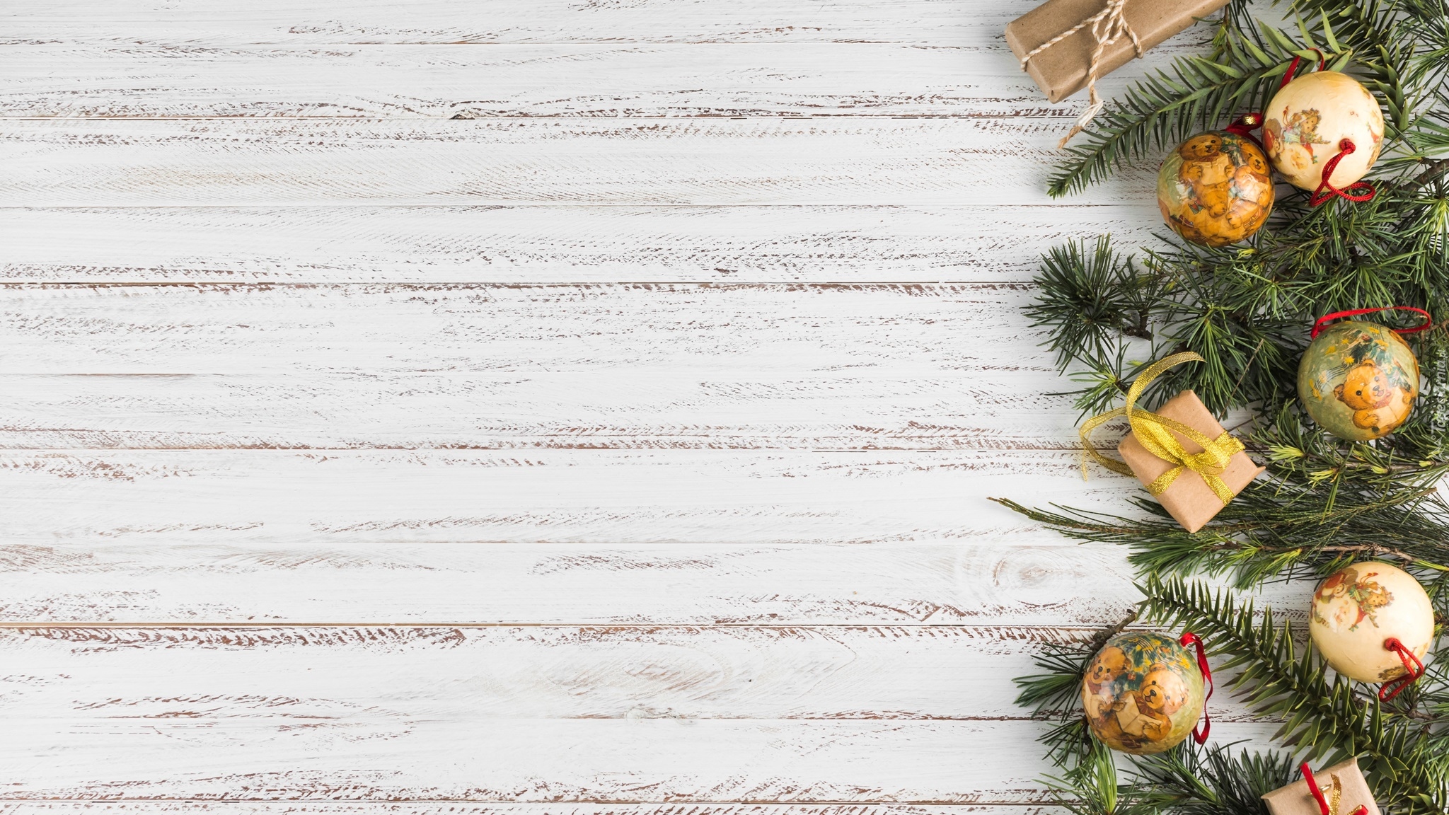 Edytor tapety: Bombki i prezenty na świerkowej gałązce