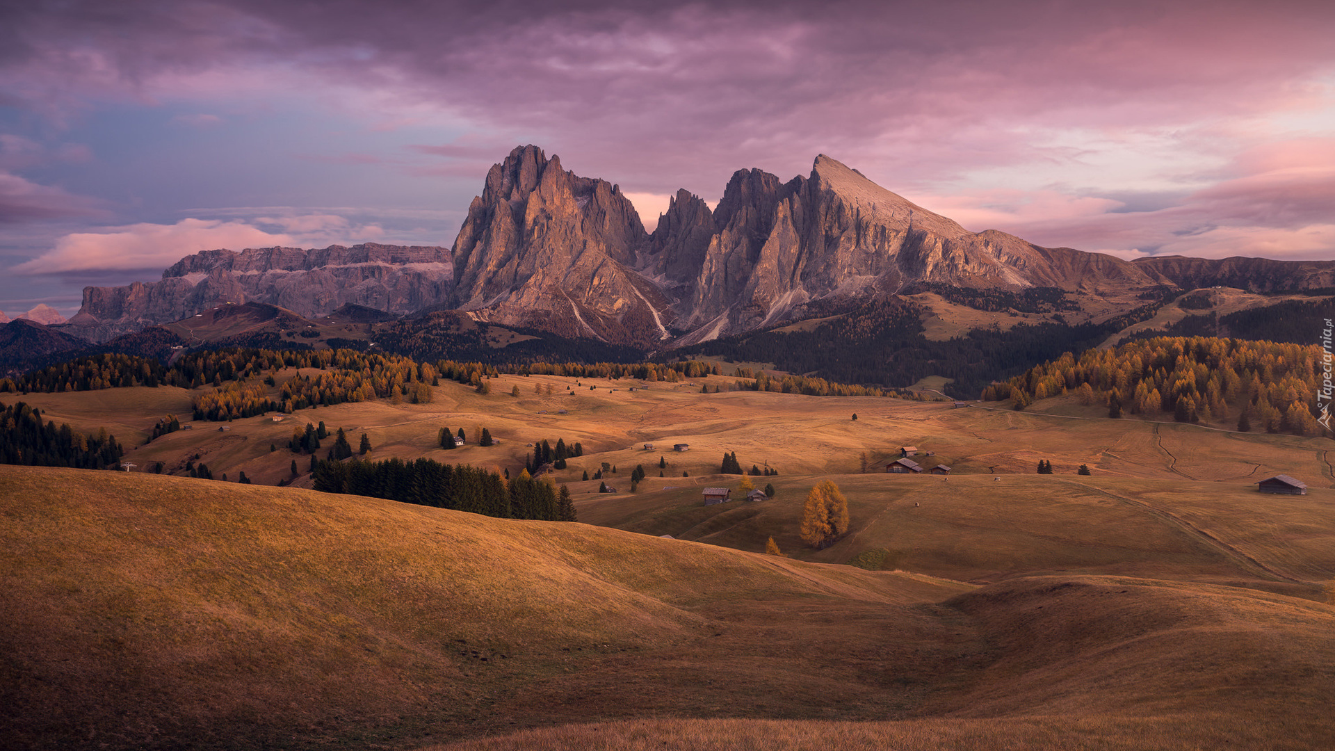 Edytor tapety: Dolina Val Gardena na tle Gór Sassolungo