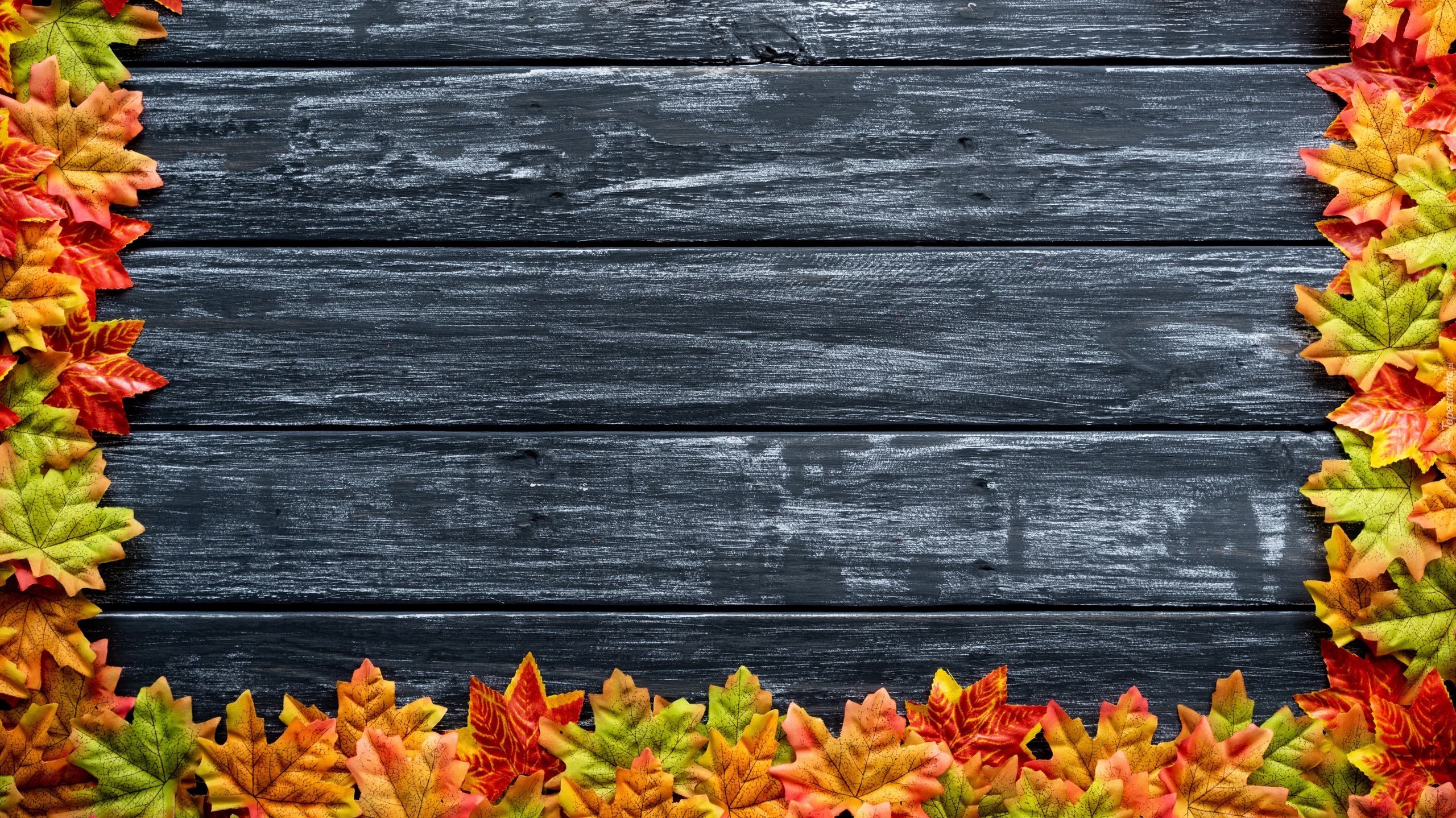 Edytor tapety: Dekoracja z liści na deskach