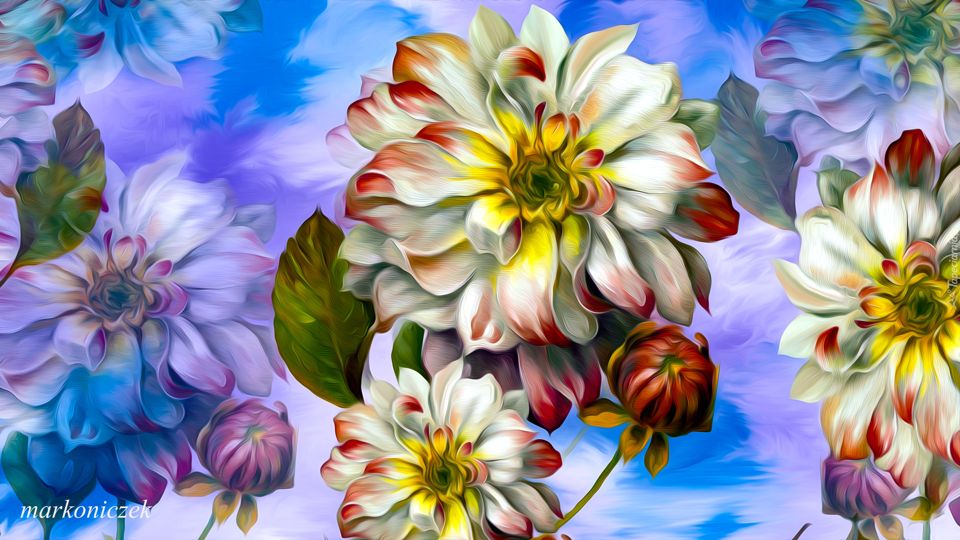 Edytor tapety: Graficzne kwiaty na niebieskim tle