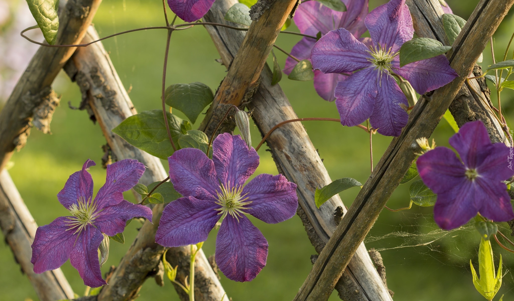 Edytor tapety: Powojnik na drewnianym ogrodzeniu