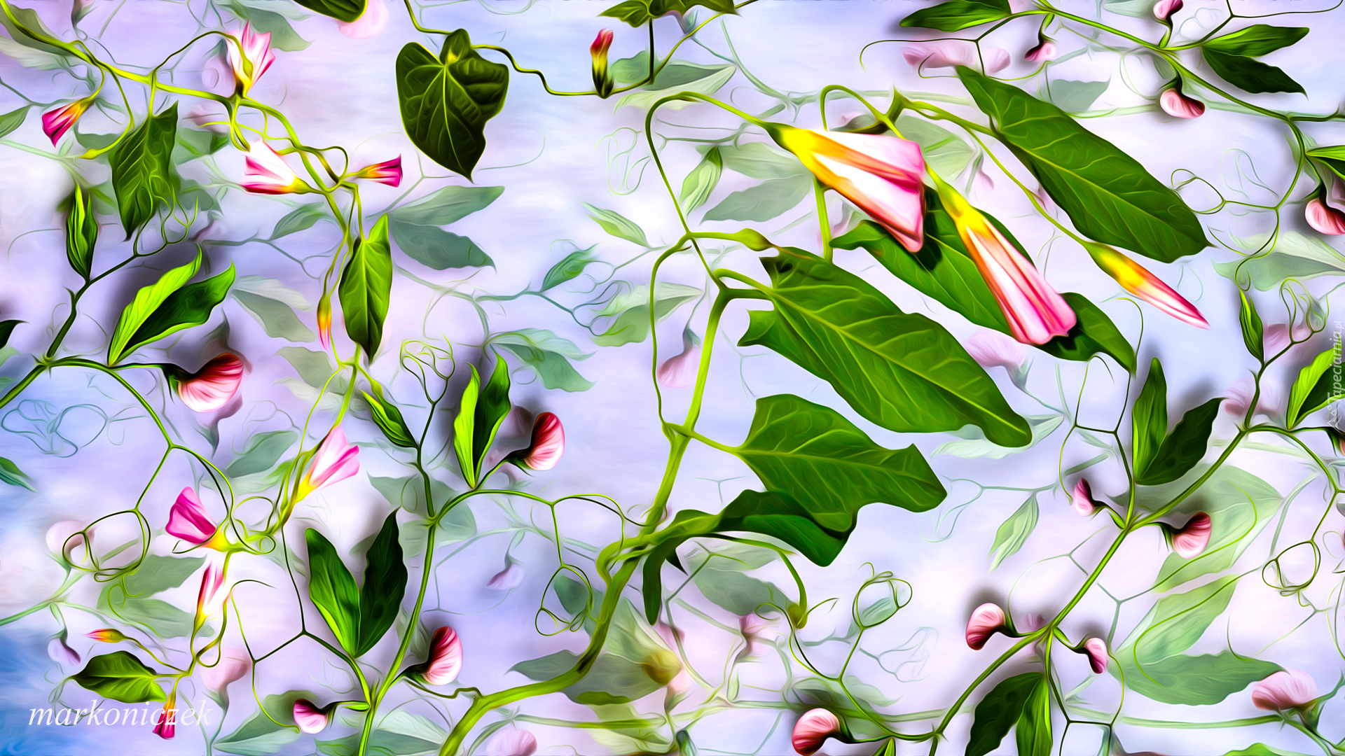 Edytor tapety: Powój i pachnący groszek w grafice