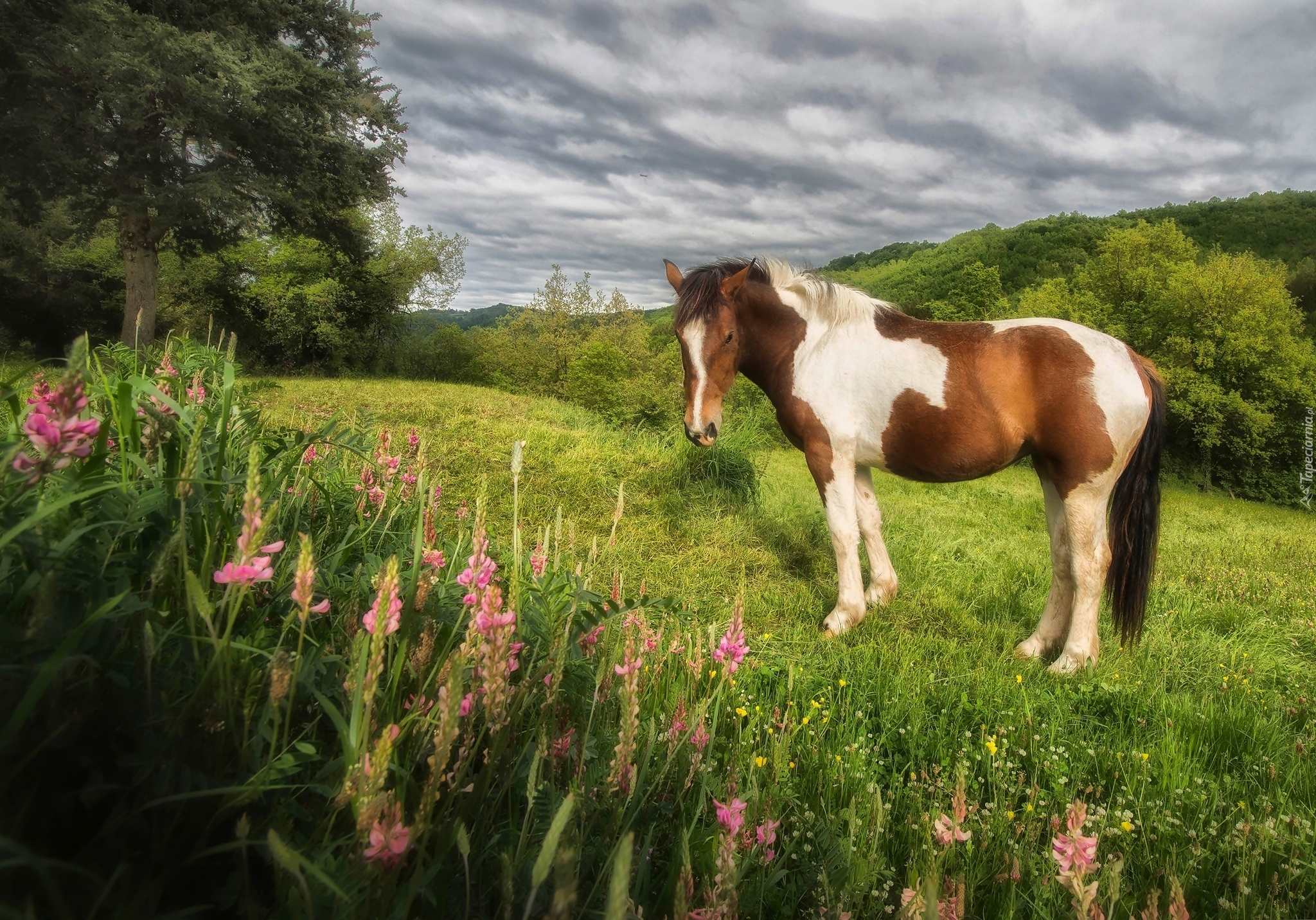 Edytor tapety: Koń na zielonej łące