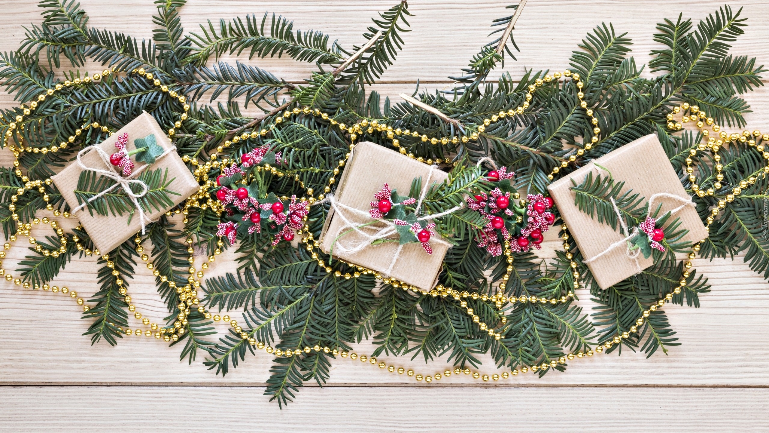 Edytor tapety: Prezenty na świerkowych gałązkach
