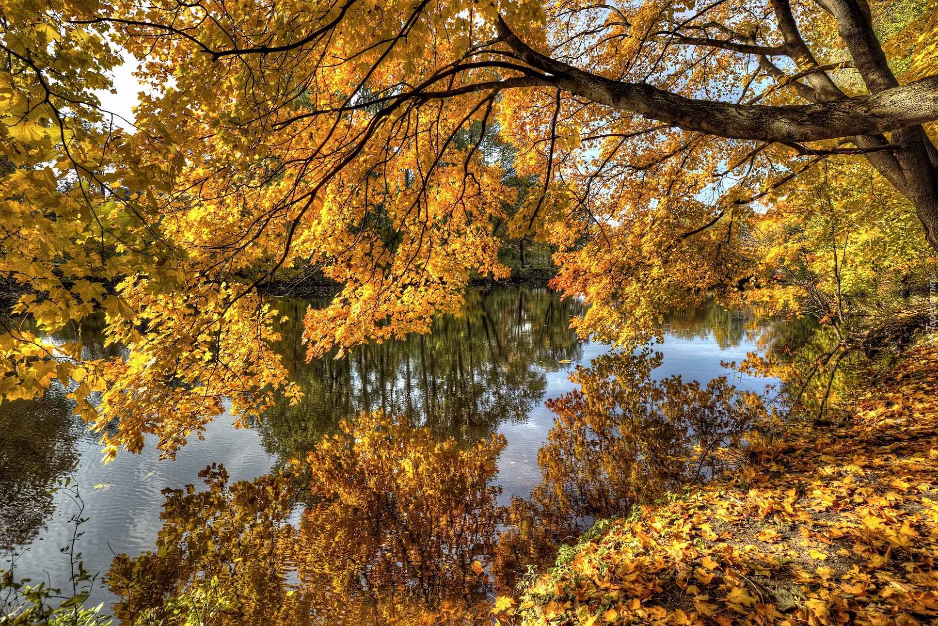 Edytor tapety: Jesienne drzewa pochylone nad rzeką