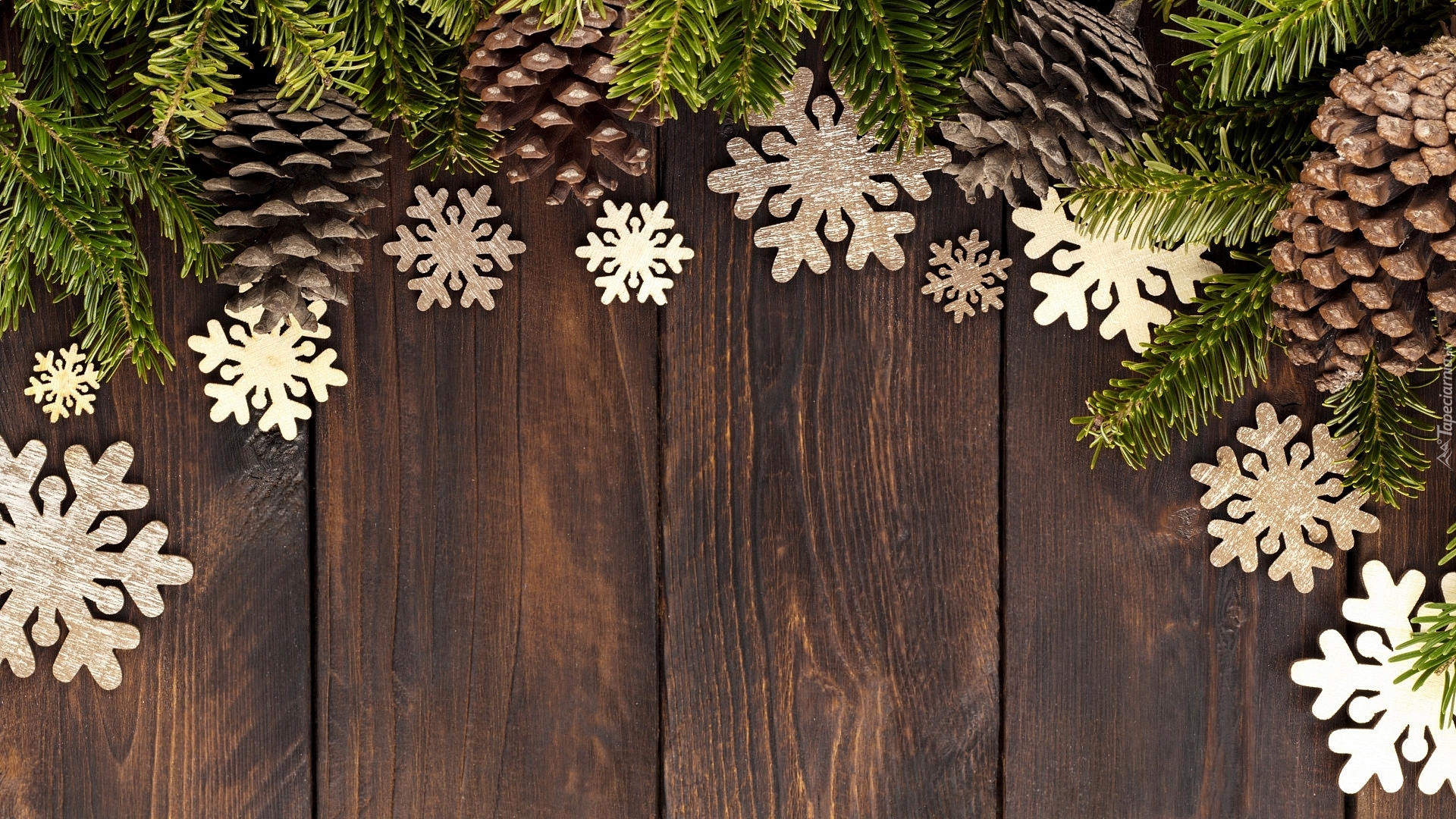 Edytor tapety: Szyszki na gałązkach obok śnieżynek