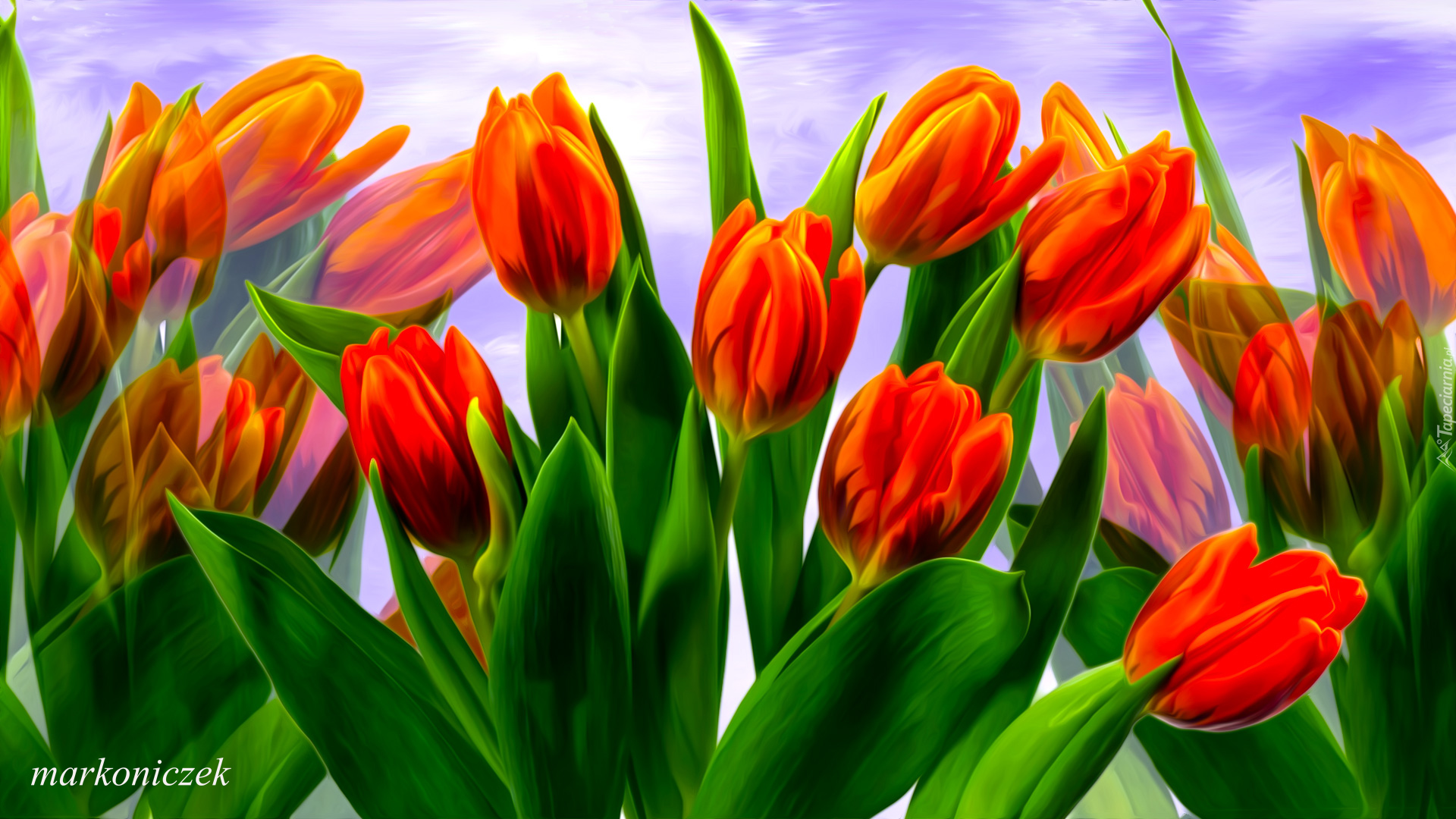 Edytor tapety: Czerwone kwiaty tulipanów