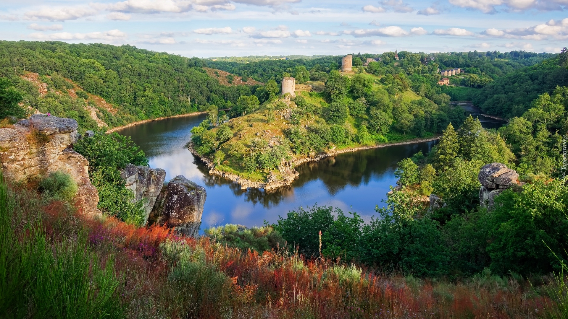 Edytor tapety: Ruiny Zamku Crozant w zakolu rzeki Creuse