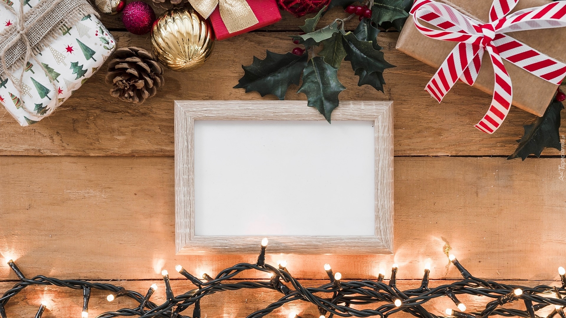 Edytor tapety: Ramka obok światełek i prezentów