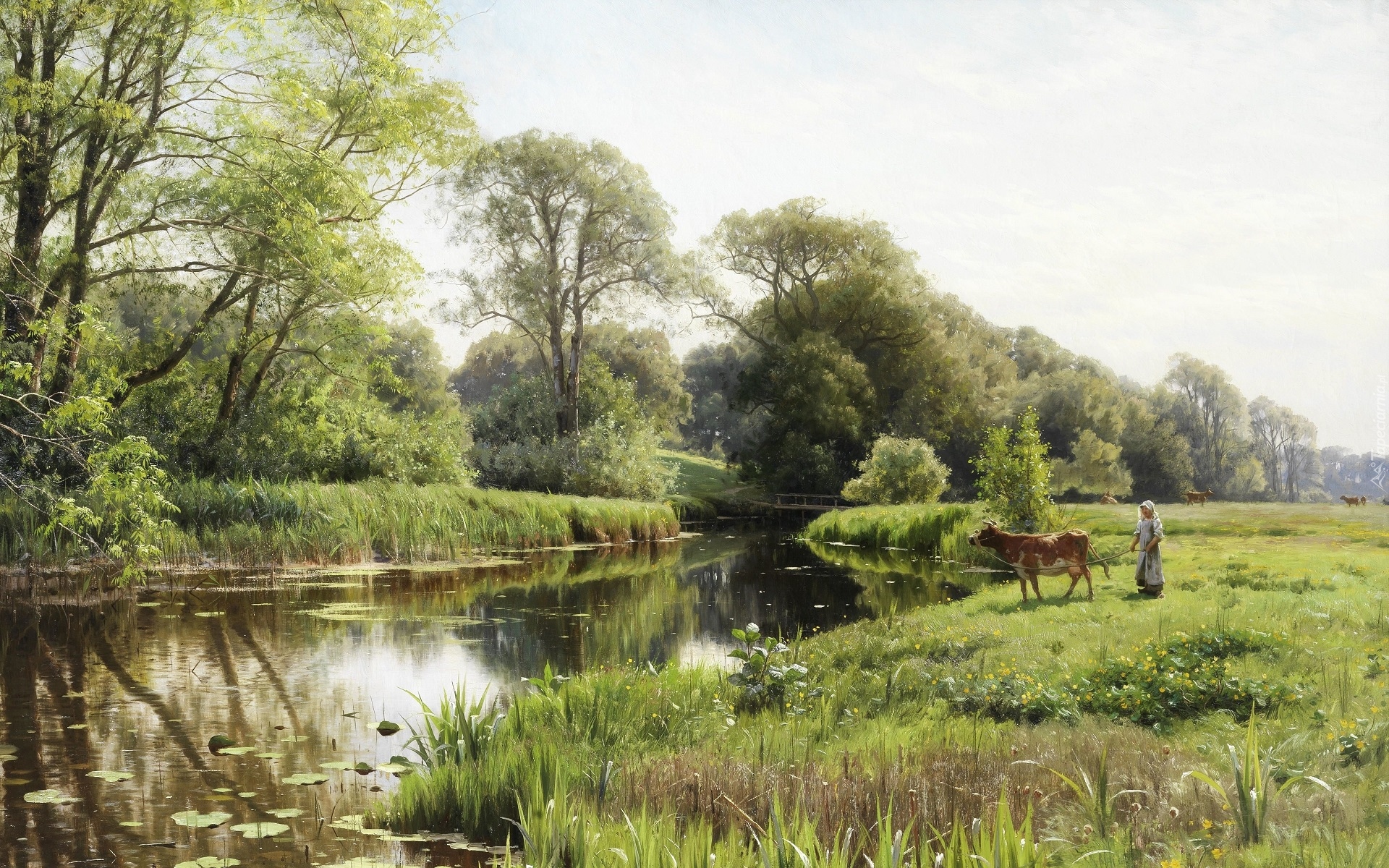 Edytor tapety: Krowa na wypasie nad rzeką