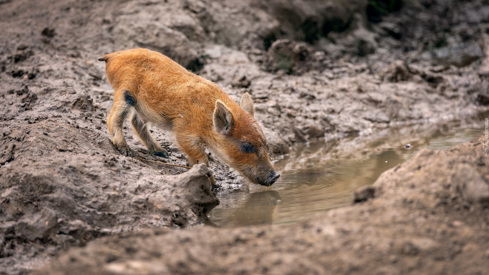 Edytor tapety: Mały dzik przy wodzie