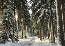 Edytor tapety: Zaśnieżone drzewa iglaste w lesie