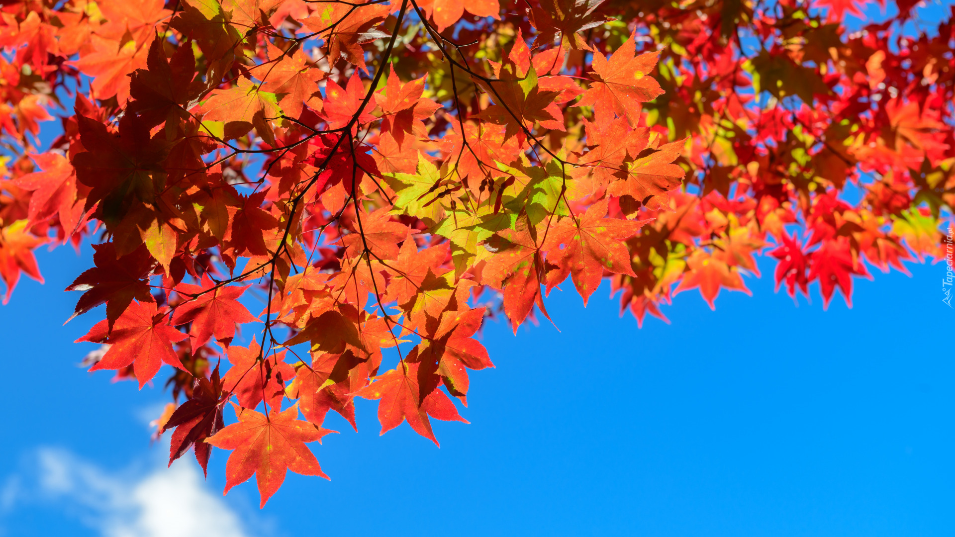 Edytor tapety: Liście klonu na tle błękitnego nieba
