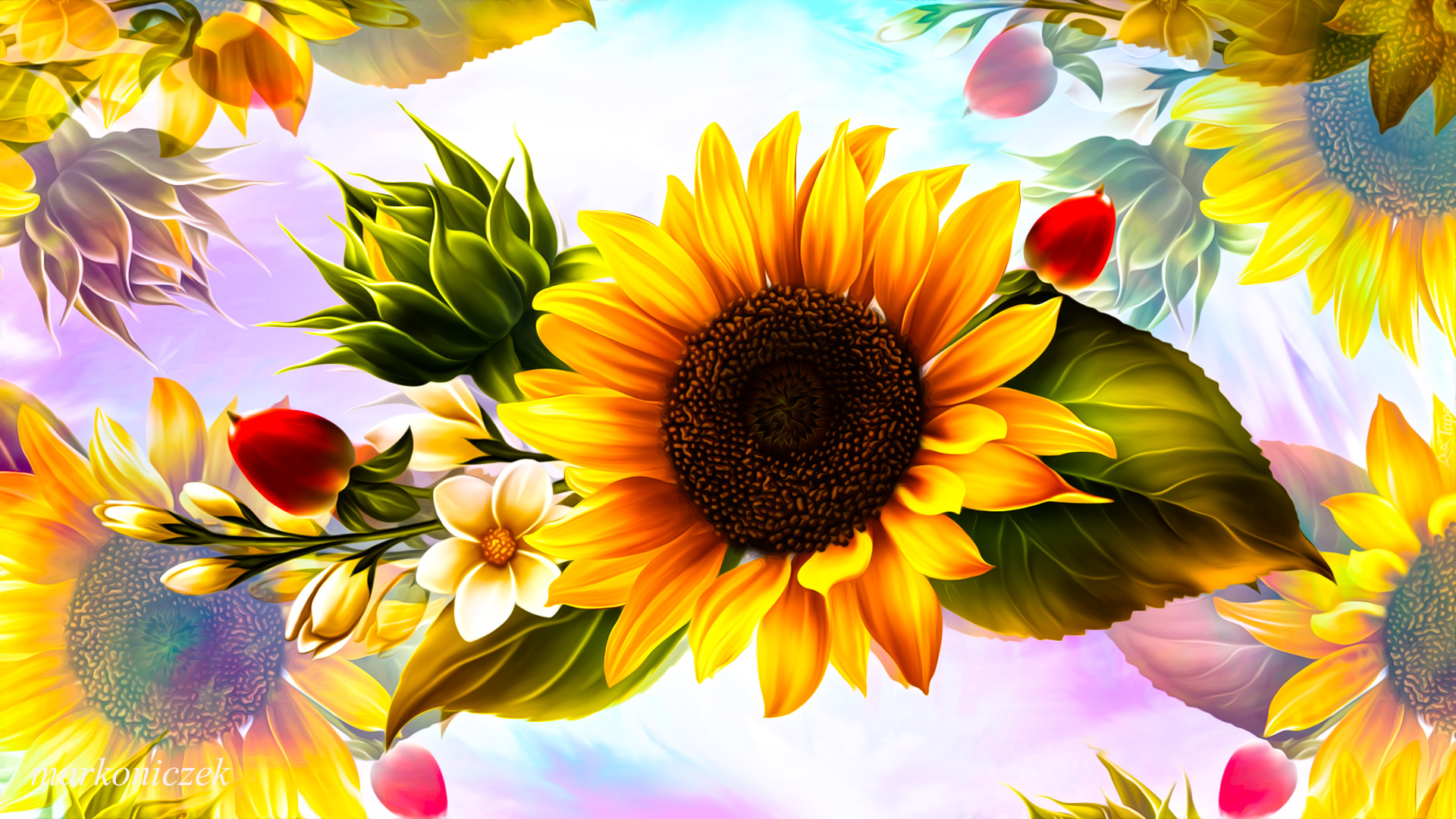 Edytor tapety: Słonecznik z liśćmi