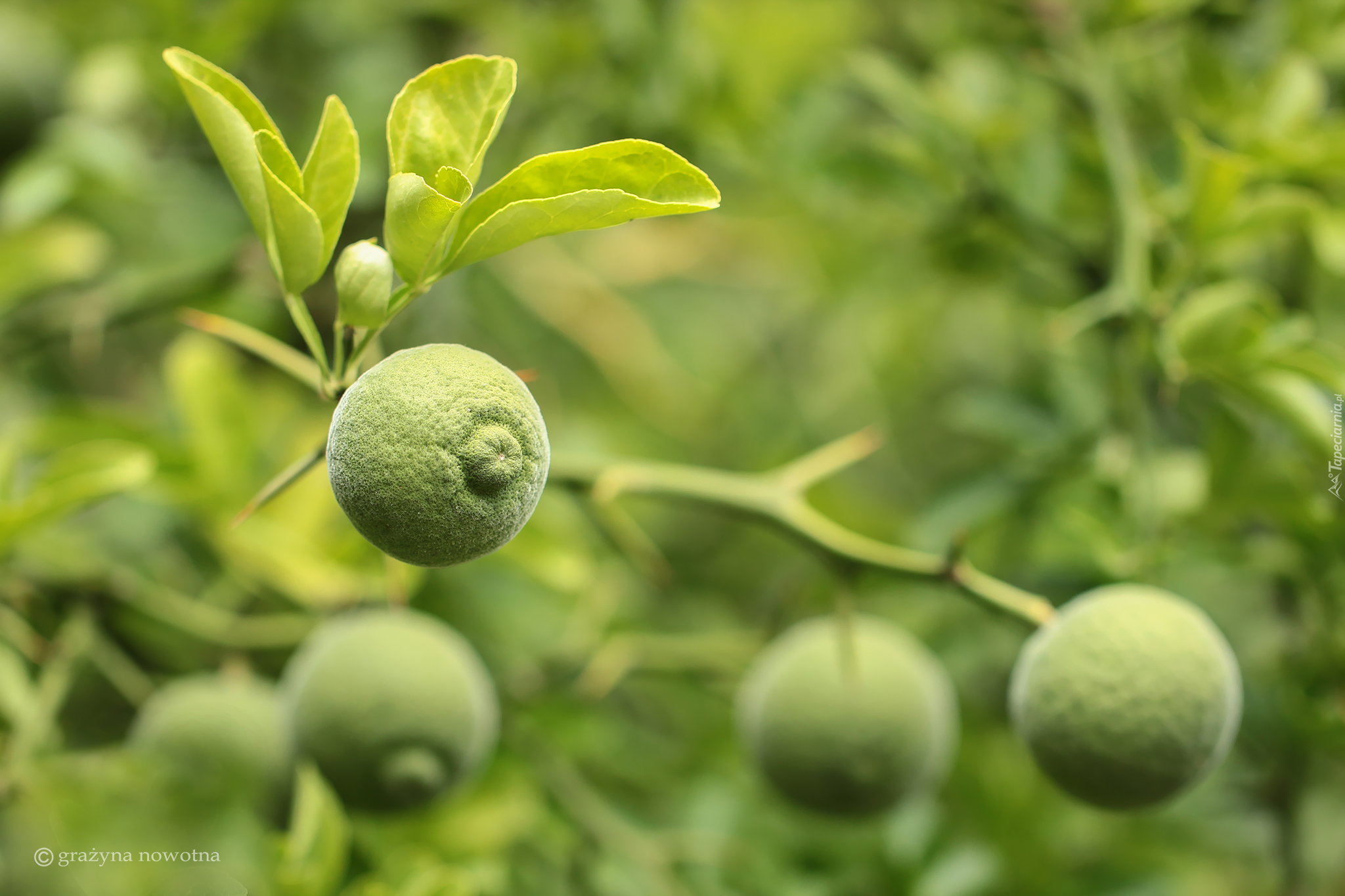 Edytor tapety: Poncyria trójlistkowa z zielonymi owocami