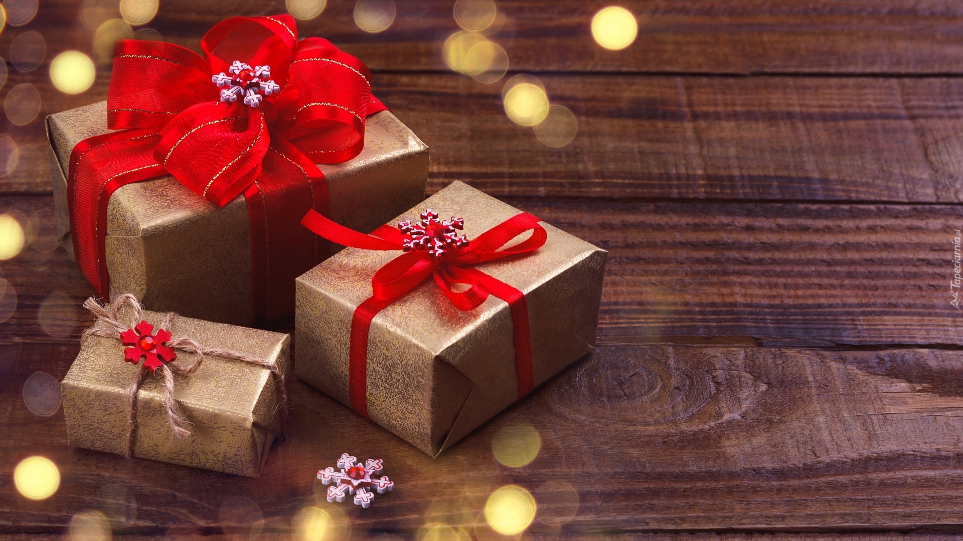 Edytor tapety: Prezenty świąteczne położone na deskach