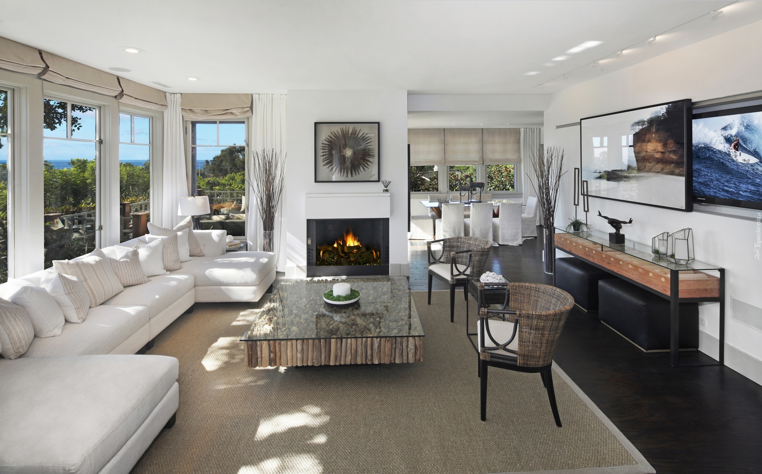 Edytor tapety: Biała kanapa pod oknem w salonie
