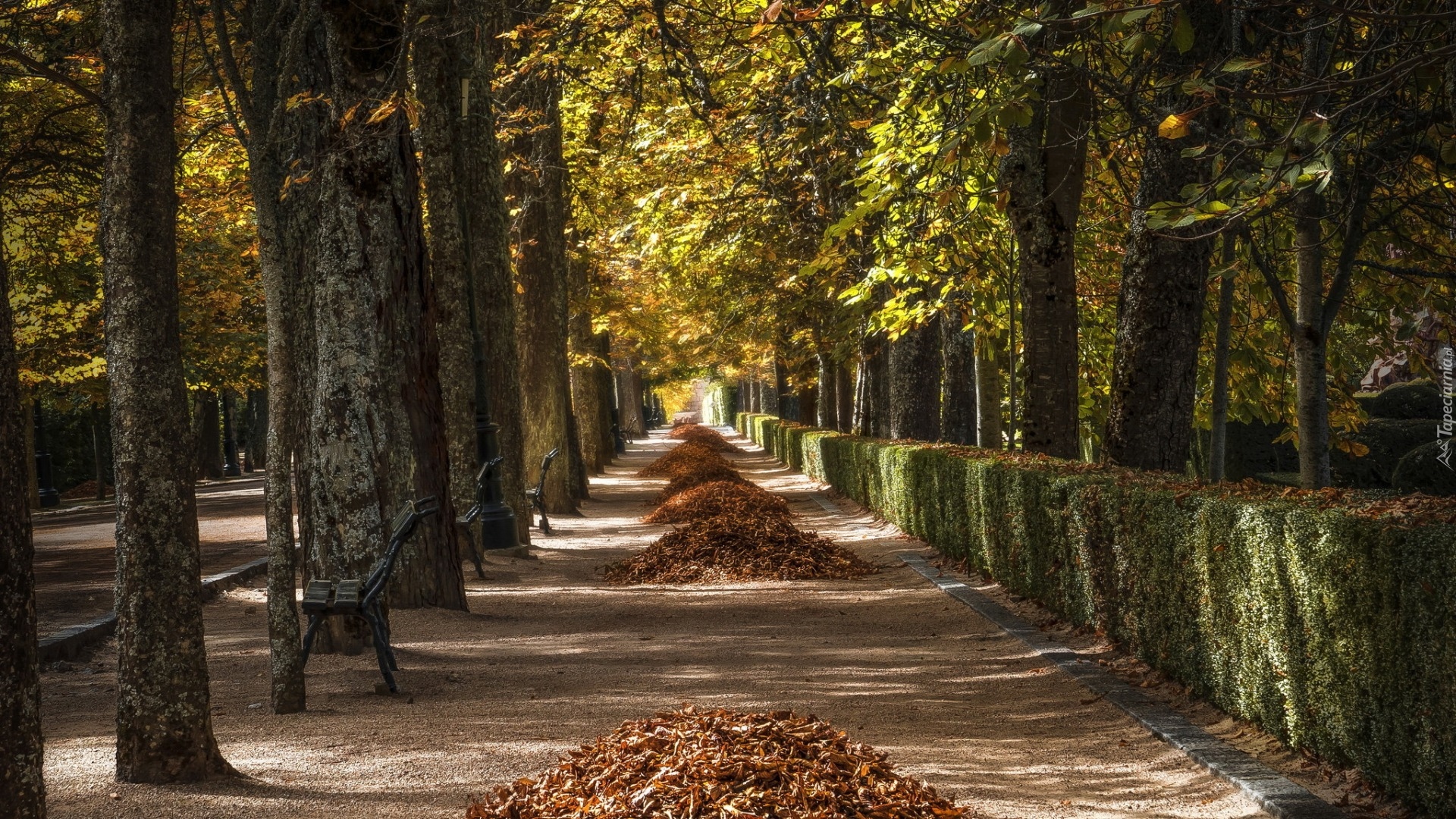 Edytor tapety: Zebrane opadłe liście w parkowej alejce