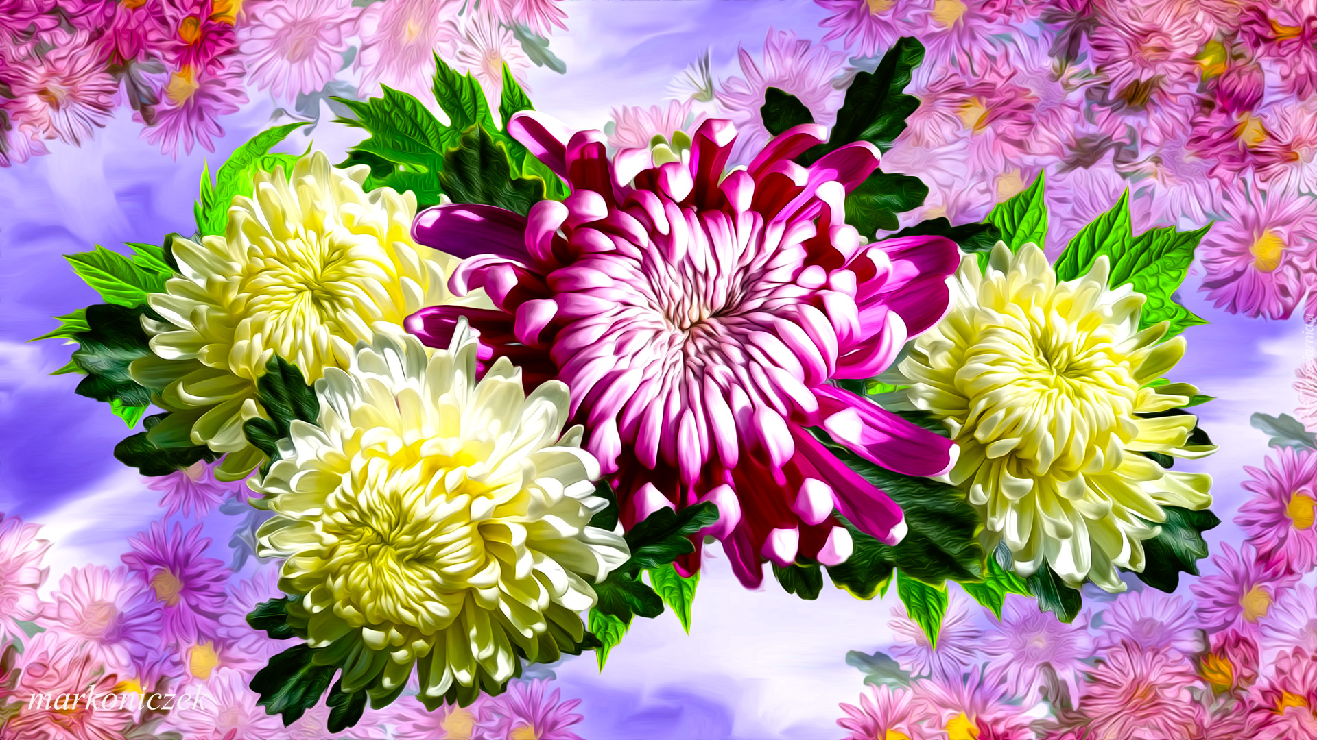 Edytor tapety: Chryzantemy kolorowe w grafice