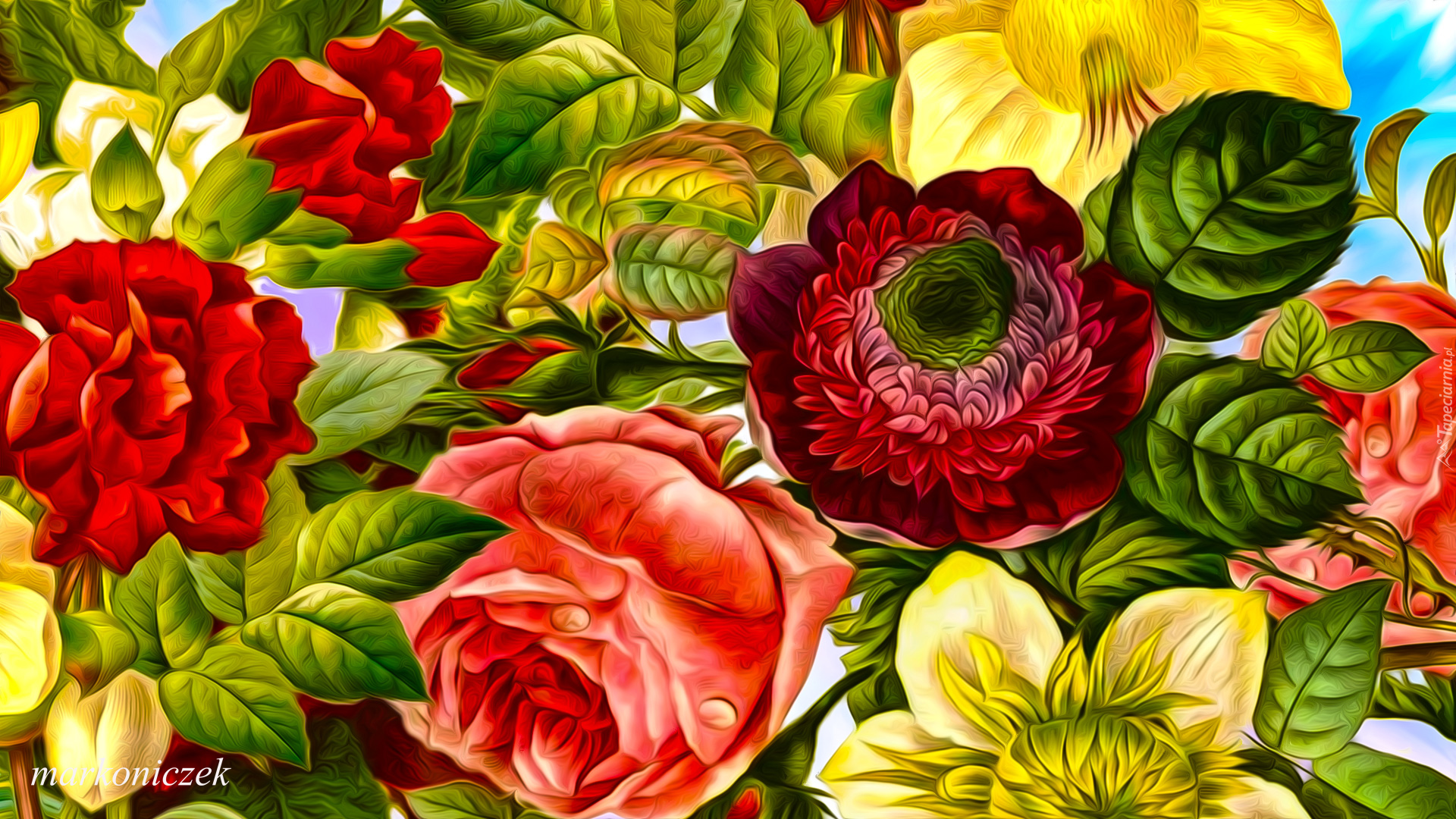 Edytor tapety: Żółte i czerwone kwiaty