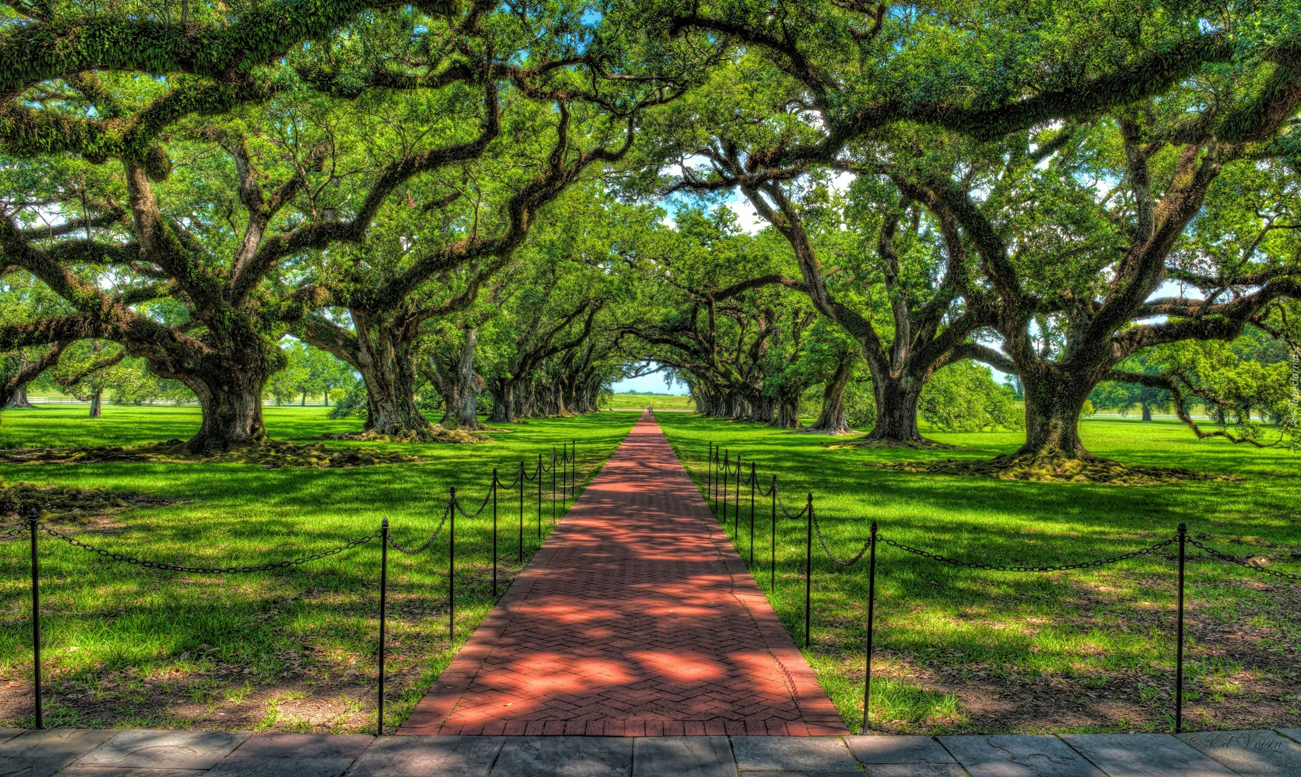 Edytor tapety: Dróżka pomiędzy rozłożystymi drzewami