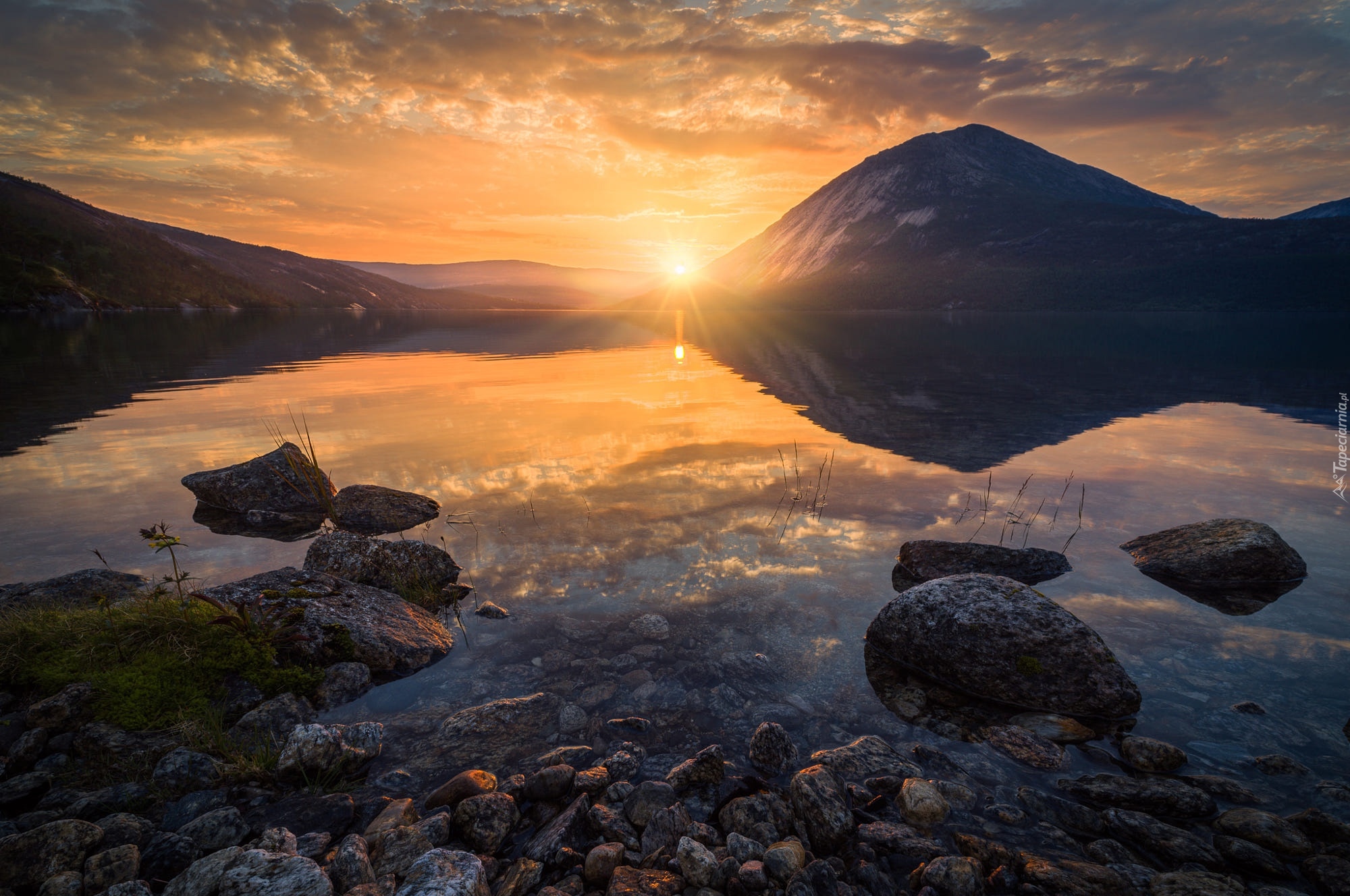 Edytor tapety: Jezioro Langvatnet w blasku zachodzącego słońca