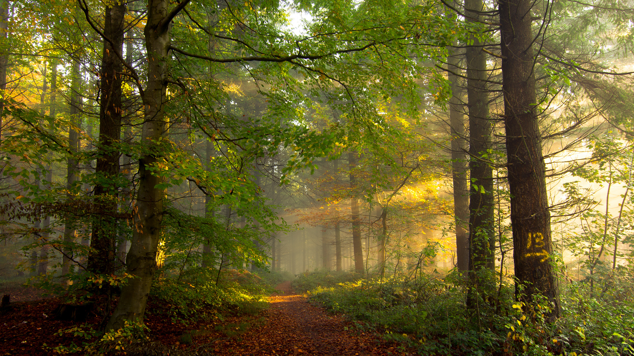 Edytor tapety: Wpadające do lasu światło słoneczne