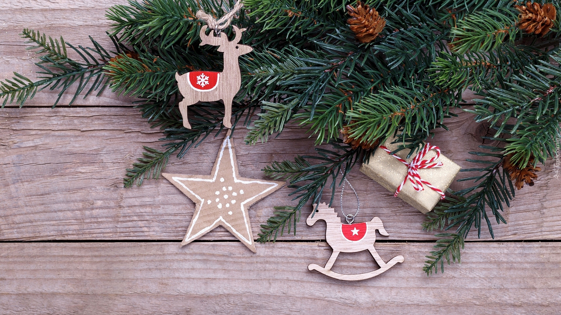 Edytor tapety: Świerkowa gałązka z ozdobami