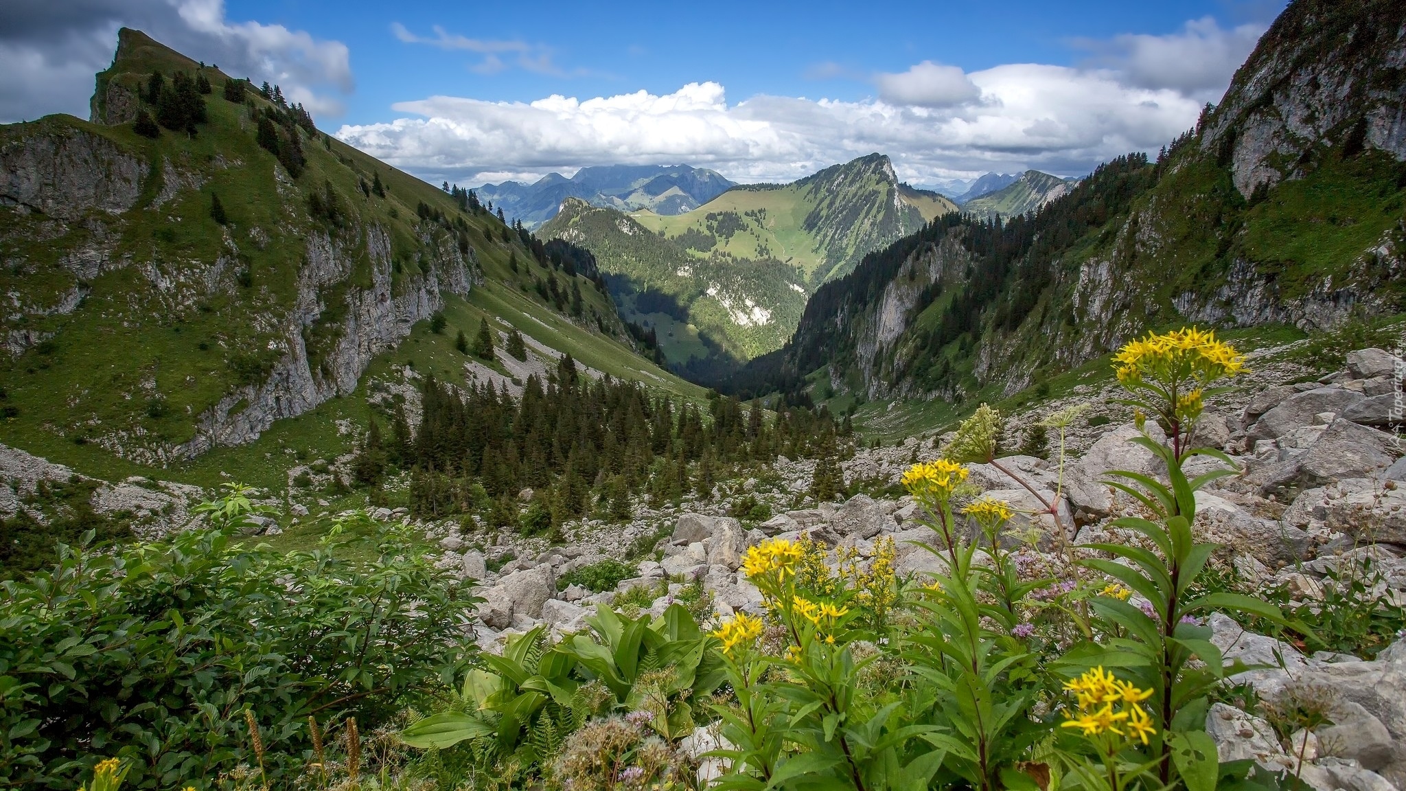 Edytor tapety: Kwiaty i rośliny na tle gór
