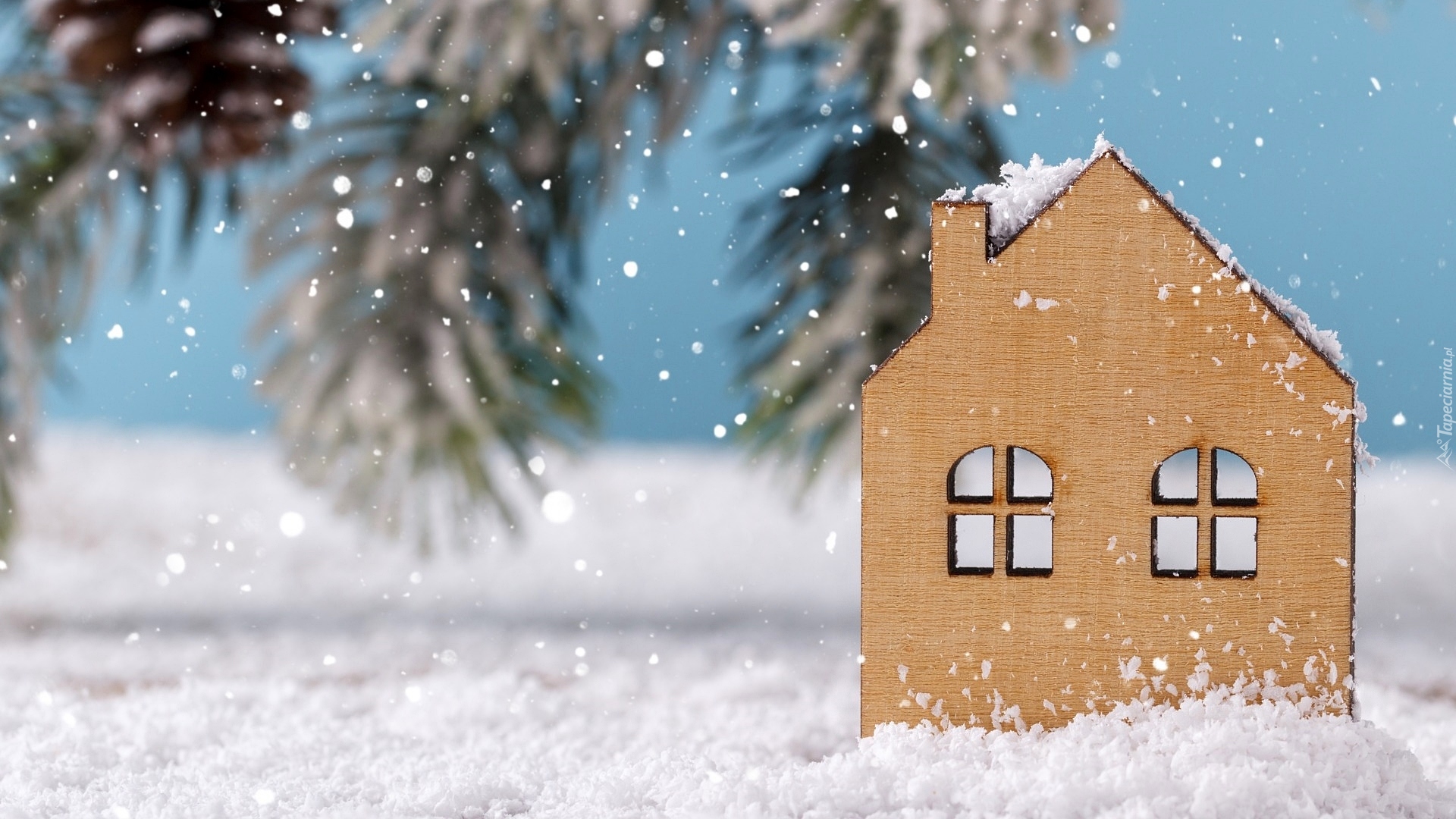 Edytor tapety: Drewniany domek w śniegu