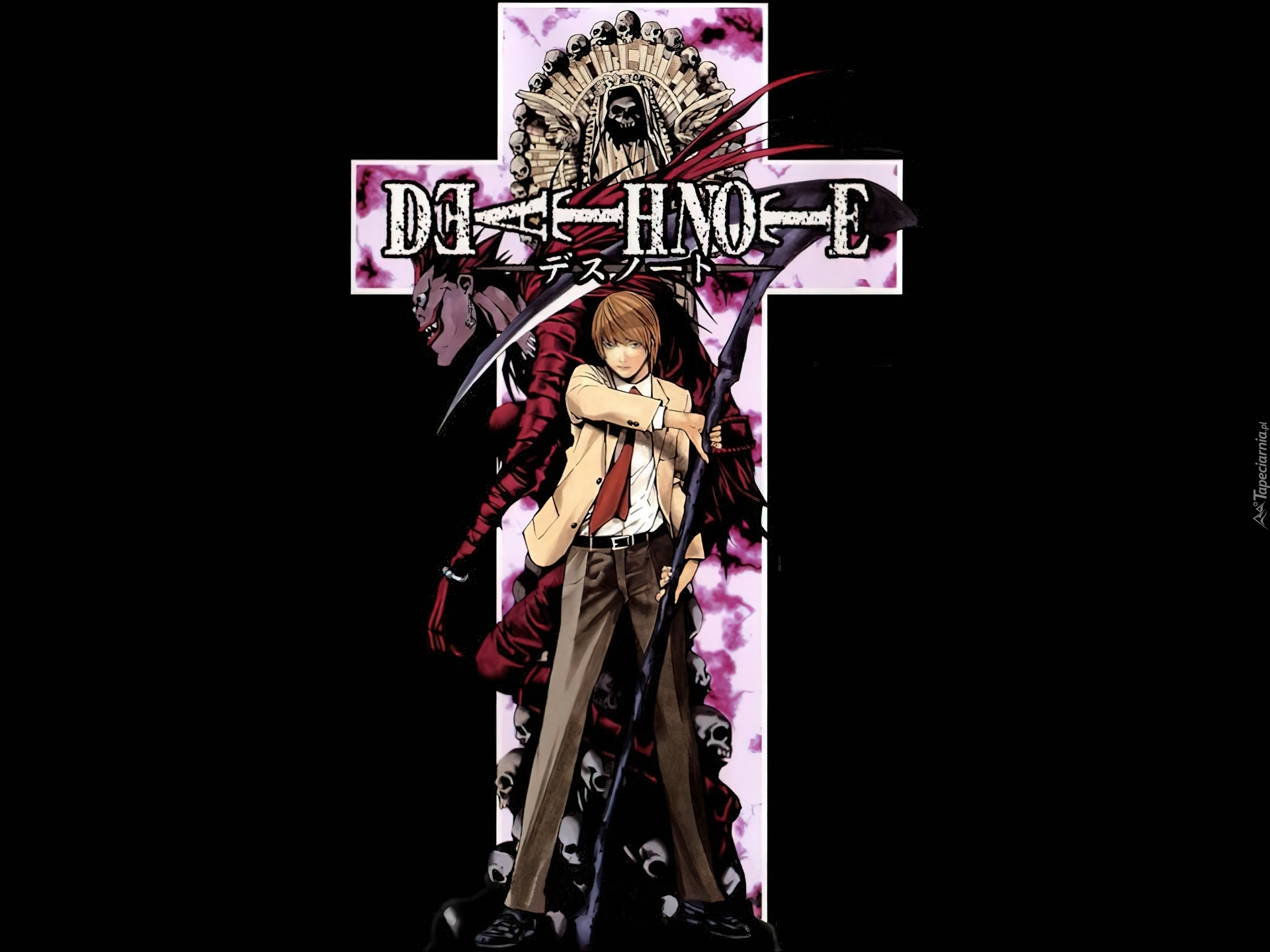 Edytor tapety: Death Note, marynarka, chłopak, krzyż, kosa, potwór