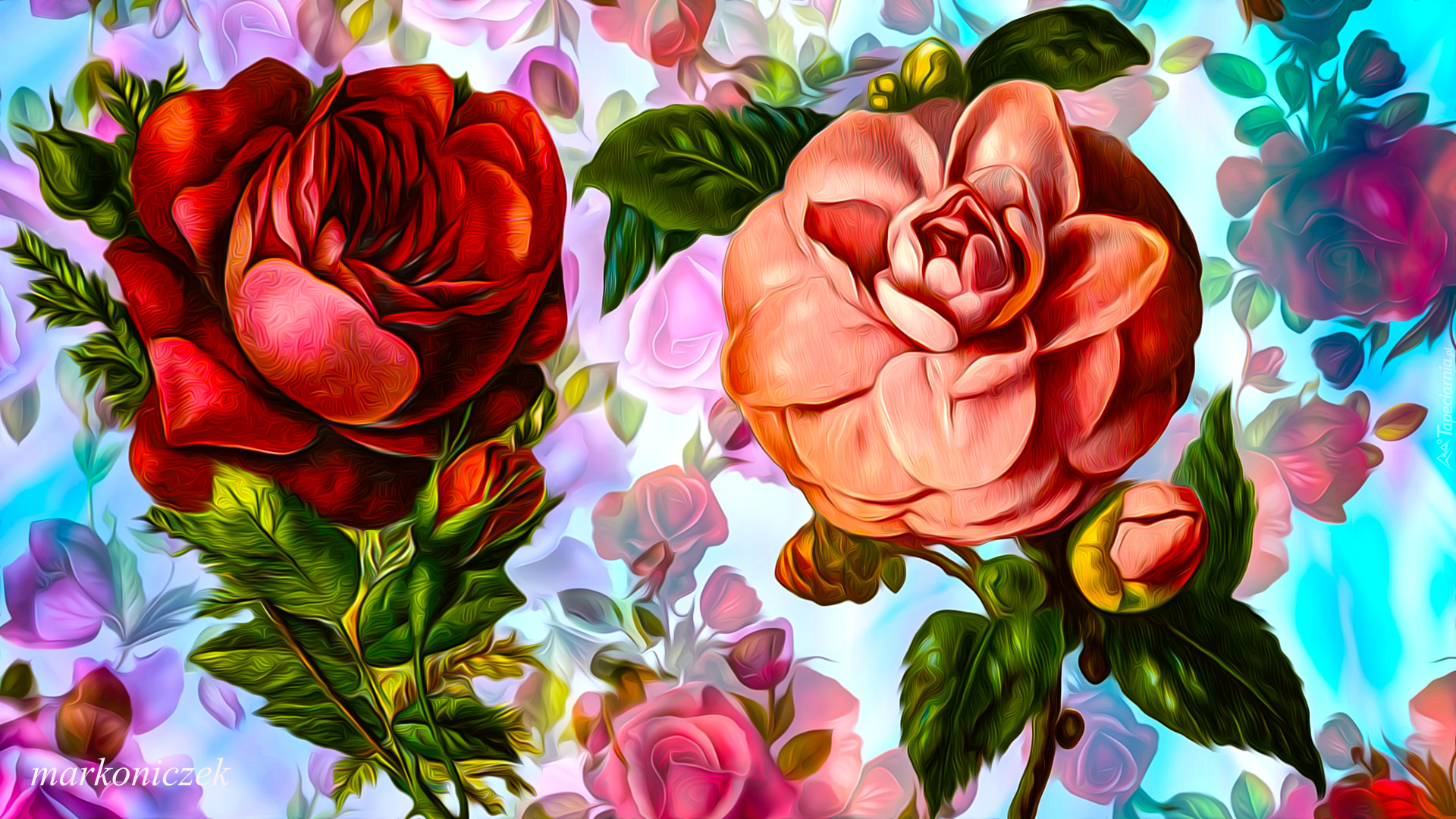 Edytor tapety: Grafika z czerwoną i różową różą