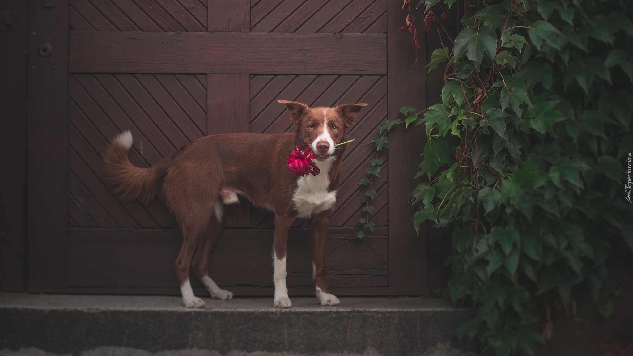 Edytor tapety: Border collie w kwiatem w mordce