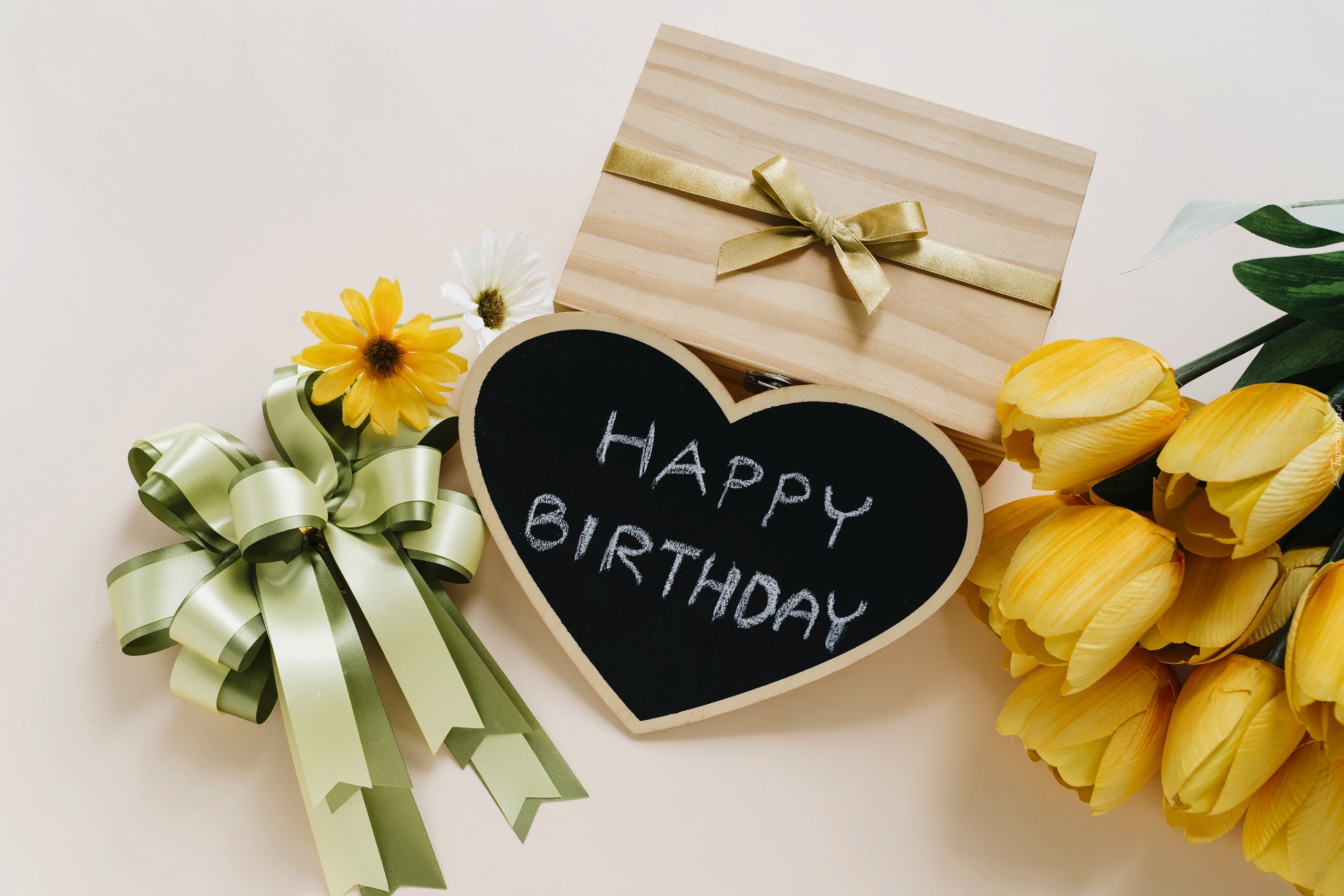 Edytor tapety: Urodzinowy prezent z żółtymi tulipanami