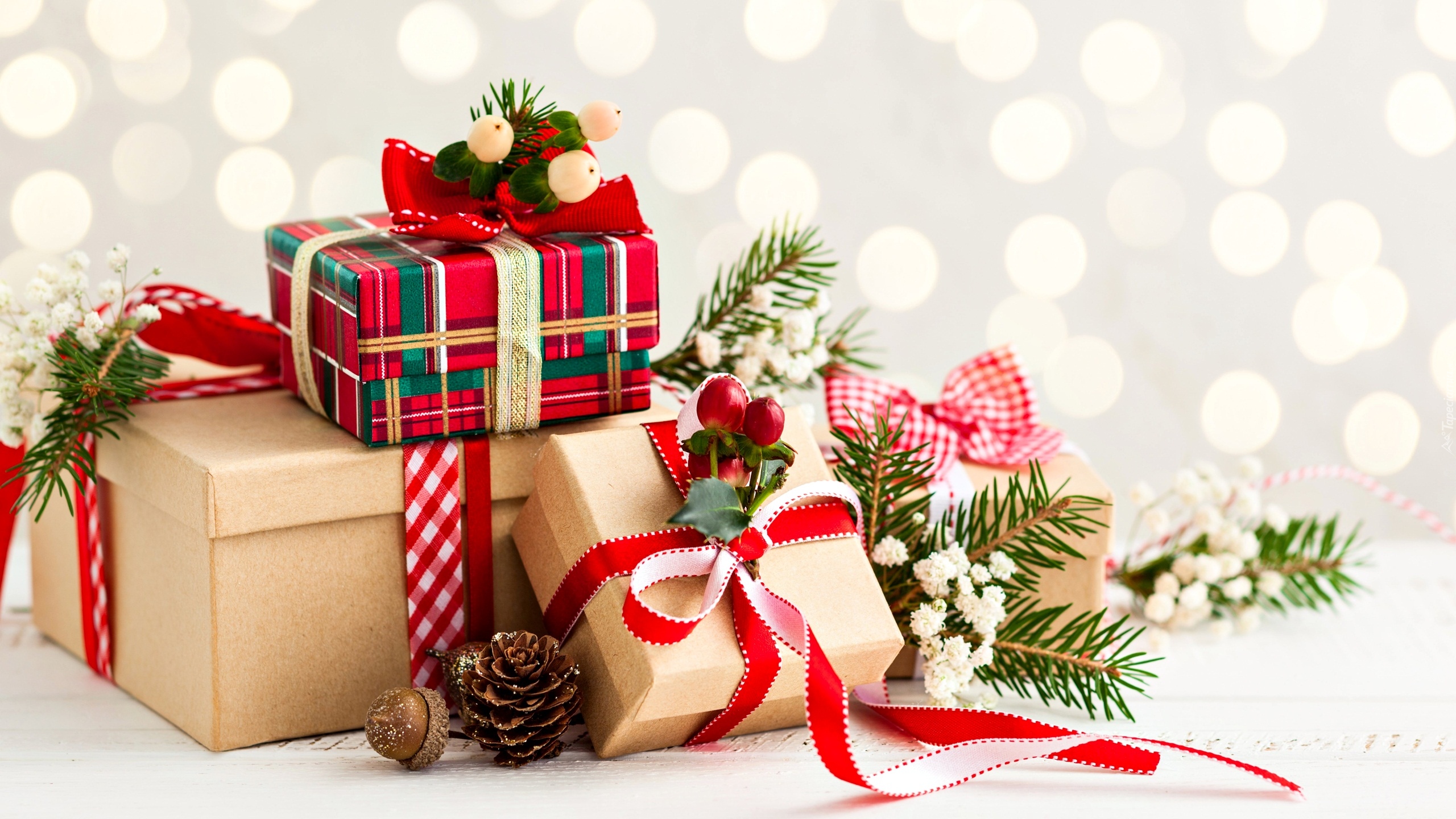 Edytor tapety: Świąteczne prezenty z kolorowymi wstążkami