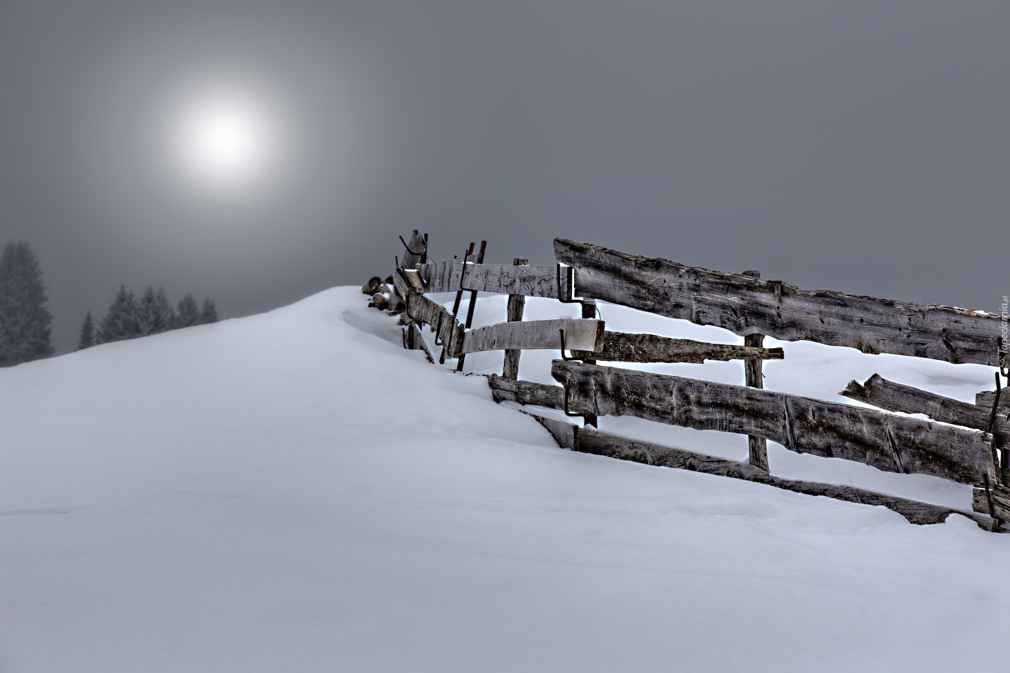 Edytor tapety: Ogrodzenie na zaśnieżonym wzgórzu